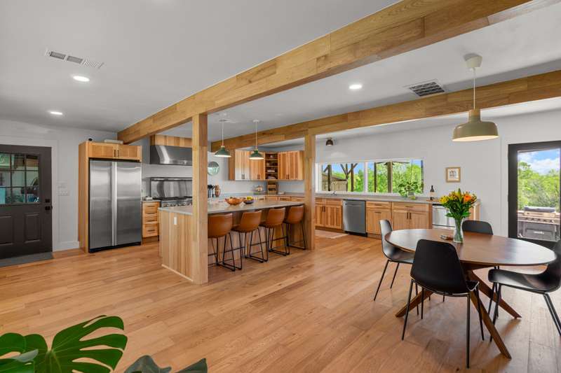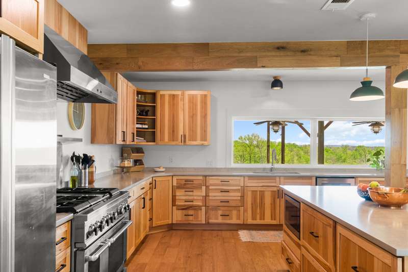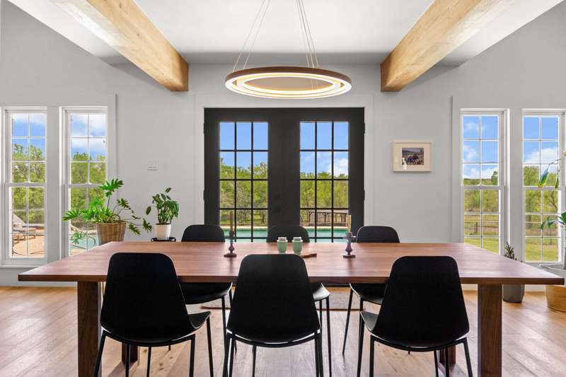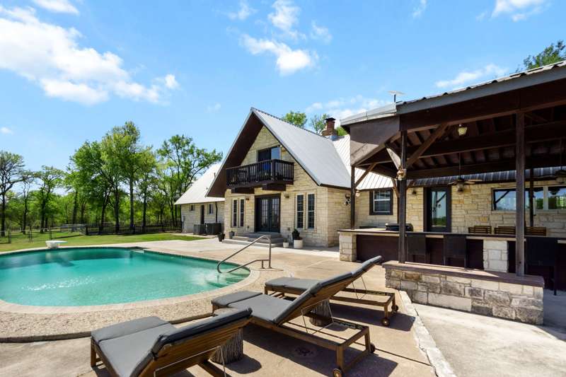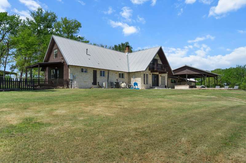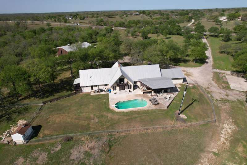 This rare, modern estate is the perfect blend of luxurious living and peaceful country charm. Sitting on nearly 10 private acres, this completely remodeled home offers stunning 360-degree pasture views, top-tier finishes, and exceptional outdoor amenities. Inside, the 4-bedroom, 3-bathroom home showcases stunning white oak wood floors throughout, a double-sided wood-burning fireplace, and custom built-in bookcases. The chef's kitchen is a masterpiece, featuring a 48 Chr(34) Jenn-Air commercial gas range with six burners and a grill, a built-in oven, a Jenn-Air refrigerator, and a spacious walk-in butler's pantry. The primary bedroom offers a walk-out balcony to enjoy Eastern views of the property. Designed for both relaxation and entertainment, the exterior boasts an in-ground pool, an outdoor kitchen, a 40' x 60' metal barn with two 15'x 60' extended covered wings, RV hookups, water, and electricity. You will also find a 40' x 15' greenhouse ready for harvesting. The home's façade features a thick Austin stone on the front and back, and a metal roof on top. This home was built for durability. This meticulously maintained estate is a rare find, offering privacy, luxury, and endless possibilities. Check-out the list of updates, special features, video and walk-through tour! - 10/4/2025 8:15:23 PM