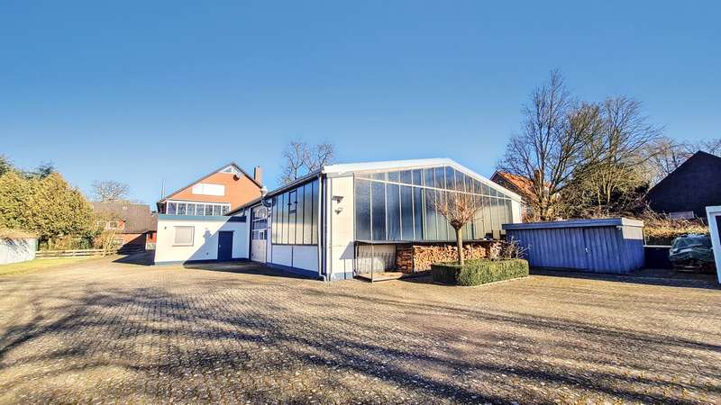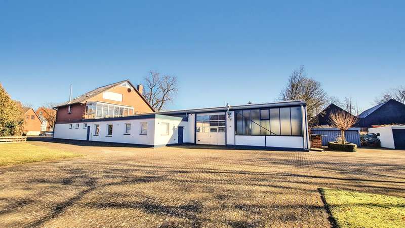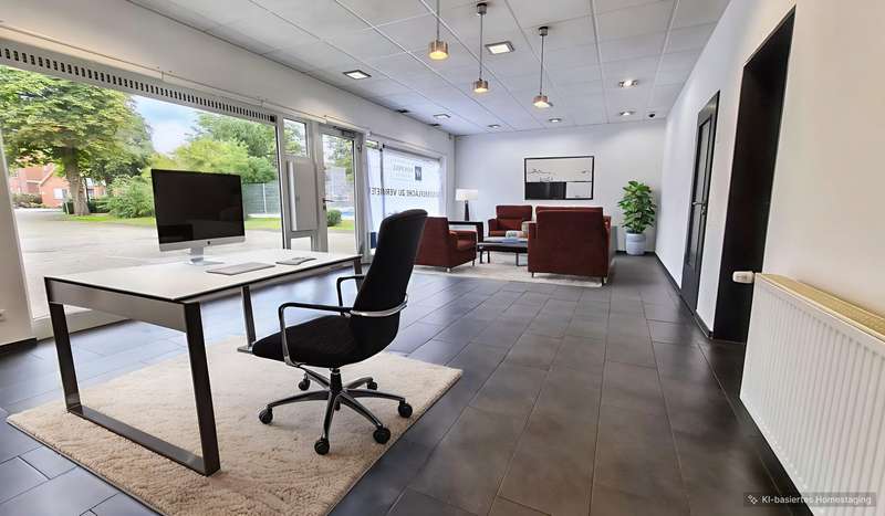 Welcome to a unique property that offers a wide range of possible uses. This well-kept commercial property is located on a generous plot of approx. 2356 m² and consists of a commercial building section and the hall. In total, the property offers approx. 472.80 m² of space, which is divided into approx. 106 m² of office and retail space, approx. 345 m² of hall space and approx. 21.80 m² of ancillary space. The building has been continuously modernized and adapted to current standards. The last modernization took place in 2013, when the hall roof was renewed and a photovoltaic system was installed. Another significant conversion took place in 2008 with the renovation of the store, while an extension was added to the structure in 1992. The property is comprehensively equipped. The spacious sales area is characterized by a large shop window front, which lets in plenty of daylight and presents your products in an appealing way. Two floor-to-ceiling, electrically operated roller doors provide easy access to the hall, which has a load-bearing concrete floor - ideal for heavy machinery or vehicles. The security of the property is guaranteed by an alarm system, and a fiber optic connection ensures a fast and reliable internet connection. Shower and washroom facilities are available for employees or visitors, and the office inside offers maximum comfort with underfloor heating. The hall has several power connections (400V), allowing flexible use of the space. The hall is kept warm by an oil-powered air heating system, while the sales, storage and office areas are warmed by gas heating. LED lighting also ensures energy-efficient and pleasant illumination of all areas. A key aspect of this property is the parking facilities: A total of 14 parking spaces are available, seven of which are in the office area and seven in the warehouse area. Exterior advertising is also well thought out: an advertising banner on the store and an illuminated tower on the street can provide excellent visibility and advertising opportunities for your business. This property offers a lot of potential and is ideal for businesses looking for a well-equipped and well-maintained showroom space. With its strategic location and versatile uses, it is ready for your business ideas. Arrange a viewing now to see the benefits of this property for yourself.