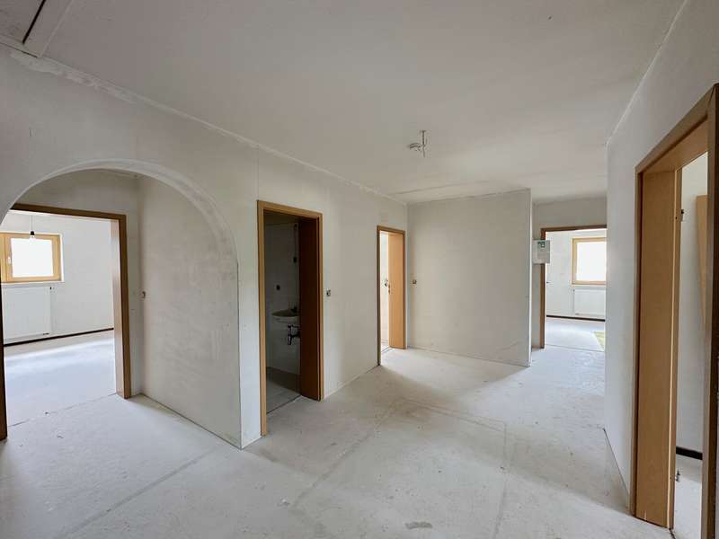 In the midst of an idyllic landscape, this spacious first floor apartment from 1998 is a real residential gem for anyone who wants to combine rural tranquillity with modern comfort. With around 122 m² of living space and four well-designed rooms, it offers plenty of room for couples, small families or people looking for an age-appropriate and barrier-free living solution. A wheelchair lift provides convenient access, while bright rooms and a well thought-out floor plan create a friendly atmosphere. The heart of the apartment is the spacious living and dining room with direct access to the south-facing terrace - perfect for relaxing with a view of the well-tended garden. The daylight bathroom has a bathtub and shower, while a separate guest WC rounds off the living comfort. Paved parking spaces are available in front of the house. The apartment also scores with energy efficiency class B, which ensures low energy costs in the long term. The monthly basic rent is €979.36, the ancillary costs €306.05, resulting in a warm rent of €1,285.41 - a fair offer at a rent of €8.00/m². Move in, feel good, take a deep breath - this apartment is a home for now and for the future. Note: Once you have completed your contact details, the exposé will be sent out fully automatically. Please contact us for further information and a viewing appointment.