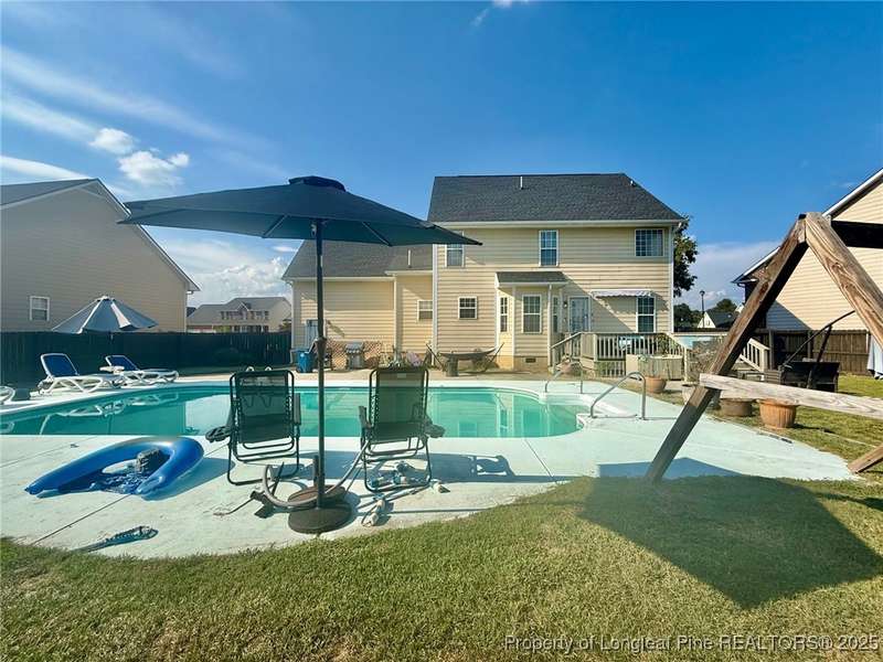 STOP! NO NEED TO LOOK ANY FURTHER! IF YOU ARE LOOKING FOR A HOME THAT HAS ALL THE COMFORTS THAT ONE WOUD WANT IN PURCHASING A HOME, THIS IS IT! LOCATED IN A HIGHLY POPULAR AREA AND THE JACK BRITT SCHOOL DISTRICT. HOME FEATURES 4 BEDROOMS, LARGE BONUS ROOM WITH BUILT-INS CAN BE 4 TH BEDROOM (ALL BEDROOMS ARE UPSTAIRS), 2 BATHS; BOTH FORMALS, LIVING ROOM WITH FRENCH DOORS; DINING ROOM HAS TREY CEILING AND WAINSCOTING; KITCHEN INCLUDES GRANITE COUNTER TOPS, ISLAND, PANTRY, AND COFFEE BAR. GREAT ROOM HAS A GAS FIREPLACE. HUGE MASTER BEDROOM WITH TREY CEILING. PAMPER YOURSELF IN THE SPACIOUS MASTER BATHROOM WITH A DEEP JETTED TUB FOR THOSE DAYS YOU JUST WANT TO RELAX AND BE TAKEN AWAY, SEPARATE SHOWER AND DUAL VANITY. OTHER BEDROOMS ARE ROOMY; SO, NO NEED TO WORRY ABOUT BEING CRAMPED. FLOORING CONSISTS OF HARDWOOD, LVP, AND TILE. WATER FILTRATION SYSTEM. NO NEED TO DRIVE TO A COMMUNITY CLUB HOUSE OR AQUATIC CENTER TO GO FOR A SWIM. SWIM ANYTIME 24/7. YOUR VERY OWN INGROUND SALT WATER HEATED POOL AWAITS YOU AFTER A LONG HARD DAY AT WORK OR IF YOU JUST WANT TO RELAX/EXERCISE; 2 AUTOMATIC POOL CLEANERS. ENJOY FAMILY AND FRIENDS SETTING AROUND THE POOL, ON THE DECK WITH AWNING, PATIO, AND FRONT PORCH. HOME ALSO HAS A SPRINKLER SYSTEM AND STORAGE BUILDING. WON T LAST LONG. PICK UP THE PHONE AND CALL TODAY! DON T DELAY!