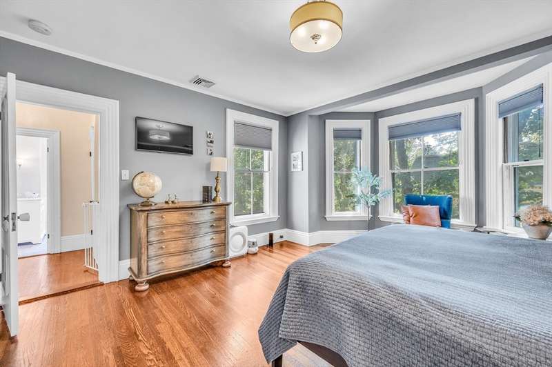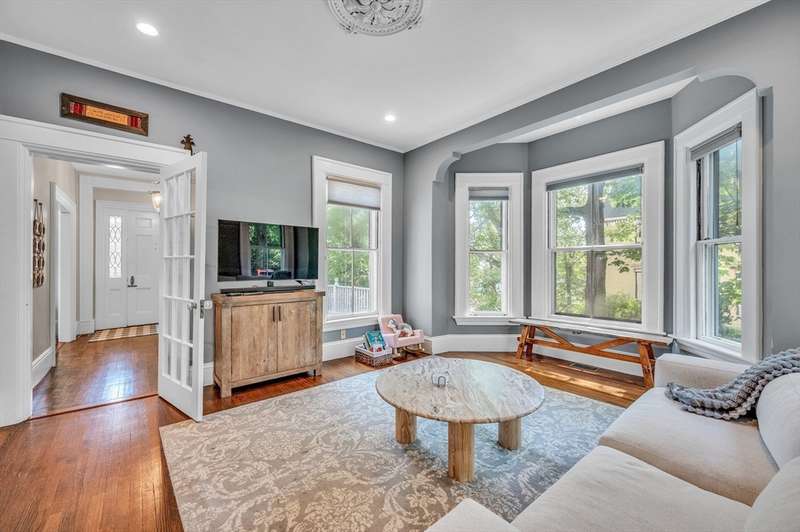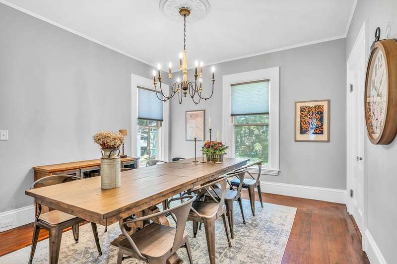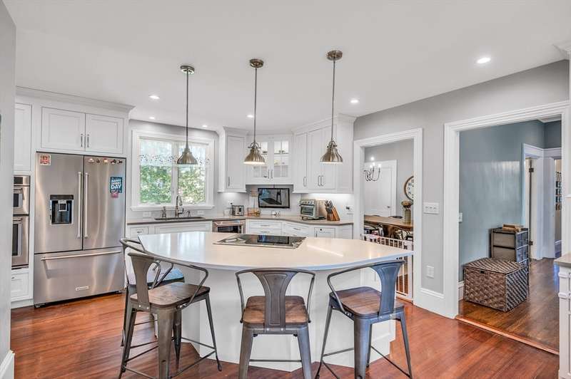 This beautifully renovated 1880 Victorian blends historic charm with modern comfort. Original details like ceiling medallions and arched doorways meet recessed lighting, radiant heated floors, and soaring 9'7" ceilings. Spacious rooms and bay windows enhance both family living and entertaining. The chef s kitchen features Wood Mode custom cabinetry, high-end appliances including an induction stove and bonus fridge drawers and a large island perfect for gathering. A mudroom with heated floors and a main-floor bath add everyday convenience. Upstairs, the primary suite includes a luxurious bath with a clawfoot tub and custom closet. Two additional bedrooms, a marble full bath, and laundry complete the upper level. Sited on 13,000 sq.ft. lot surrounded by lush trees this home has a lovely yard a 1+car garage, EV charger. A commuter's dream: easy access to the Riverside T, I 95 the Pike. Near Lasell University + Newton Wellesley Hospital. Williams Elementary, Brown Middle, Newton South.