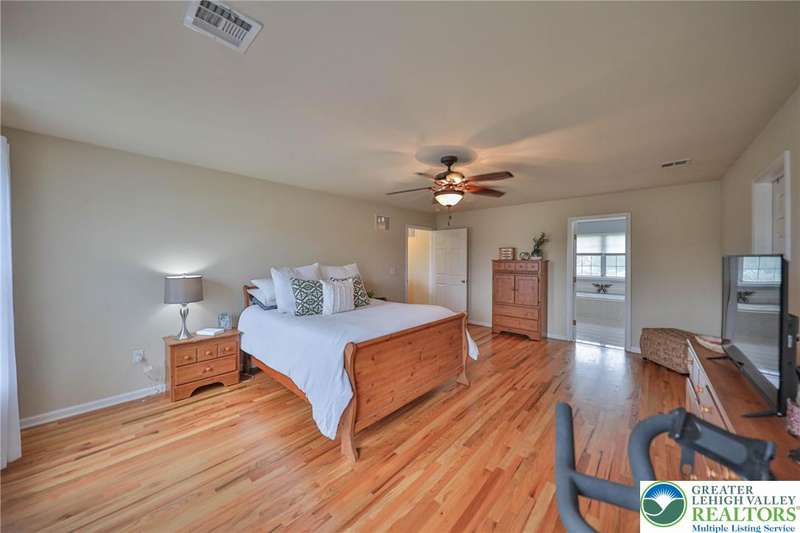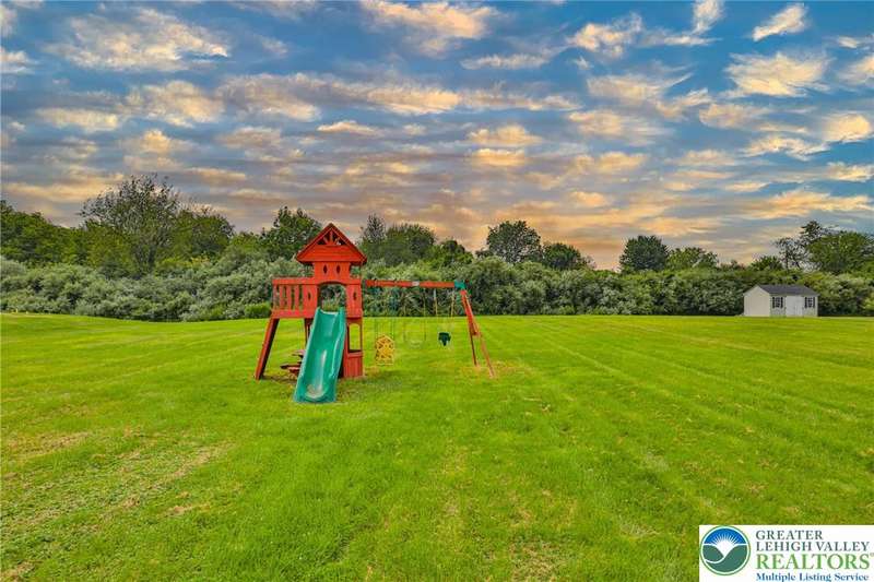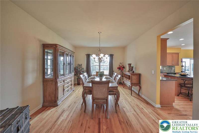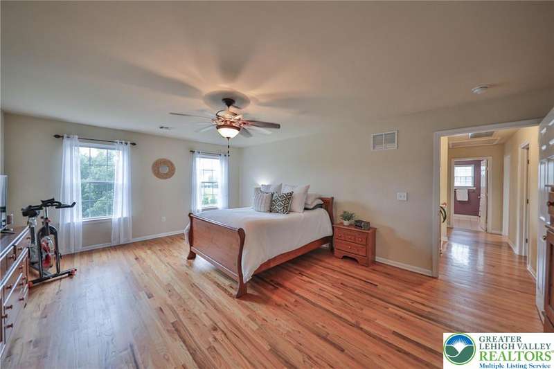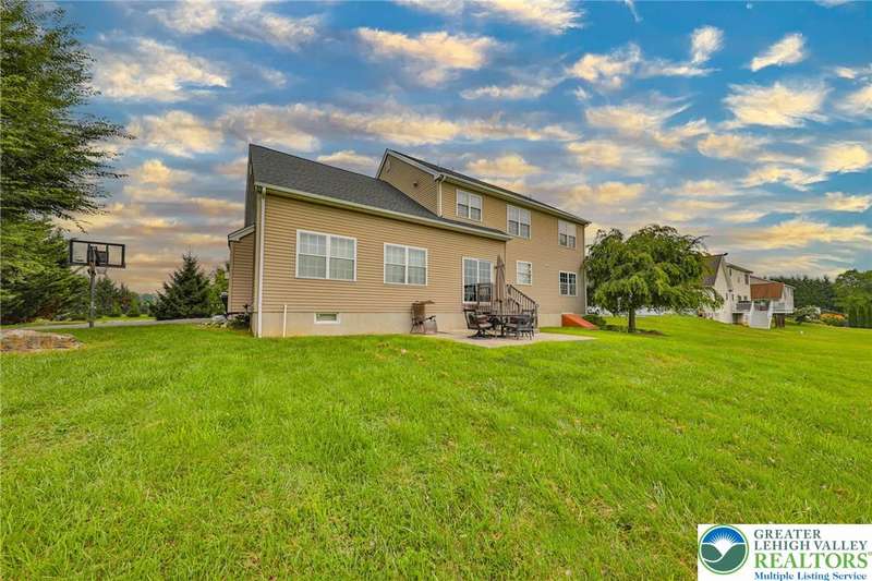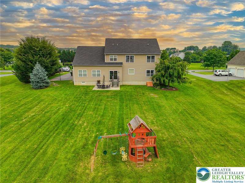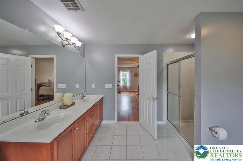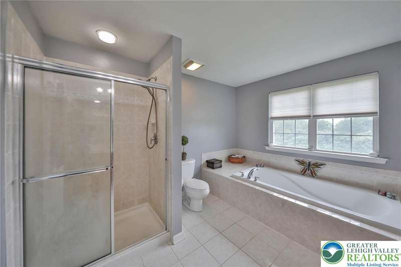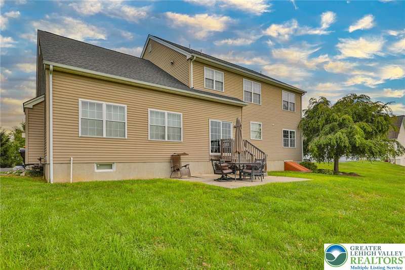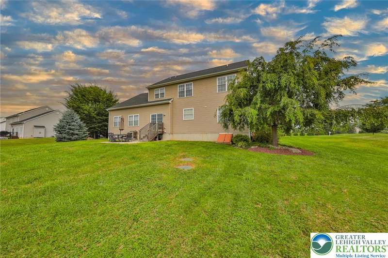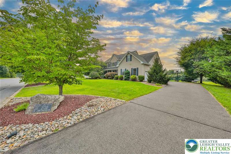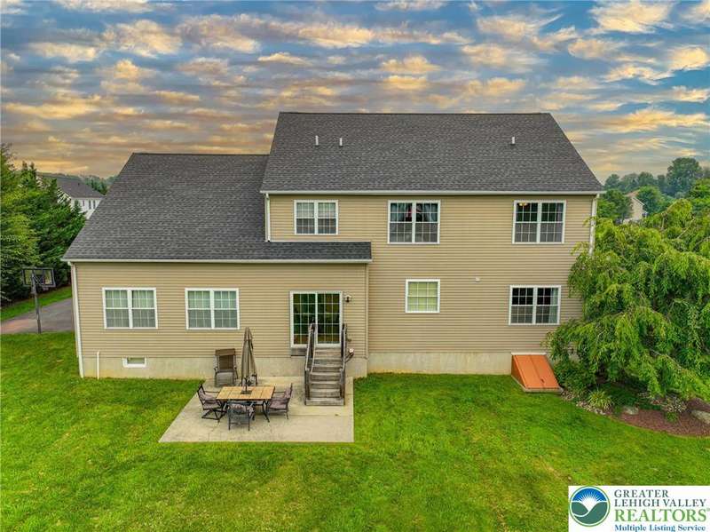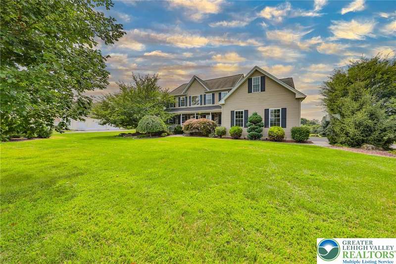 This Beautiful 4 bedroom colonial situated in desirable Florey Farm neighborhood, has been wonderfully maintained and is move in ready. Located in sought after Nazareth School District. The two story center hall colonial welcomes you to just about 3000 sq. ft. of living space. The Valuted Ceiling and gas fireplace are the focal points of the family room. Convenient open concept design allows the ease of entertaining. The kitchen is light and bright and has been updated with granite counters and backsplash and includes a large center island with additional seating. The formal dining room and living rooms are a great place for guests. The office will accommodate a work from home lifestyle. Half bath and laundry are located on main floor. The second floor has been upgraded with beautiful hardwood floors. The primary bedroom is impressive in size and features a massive walk in closet, with doors that lead to additional storage space above the garage. The en-suite comes with dual vanity sinks, a garden tub, and stand up shower. 3 more roomy bedrooms and a modern main bath complete this floor. Relax on the patio overlooking a flat tree lined back yard that offers so much open space. And with a 3 car garage and expanded driveway, there's plenty of parking. Perfect location nearby to grocery stores, shopping, many popular eateries, and easily accessible to routes 33, and 22 for commuters.