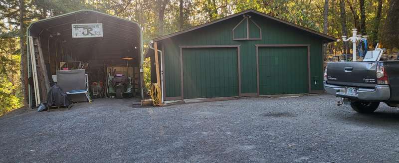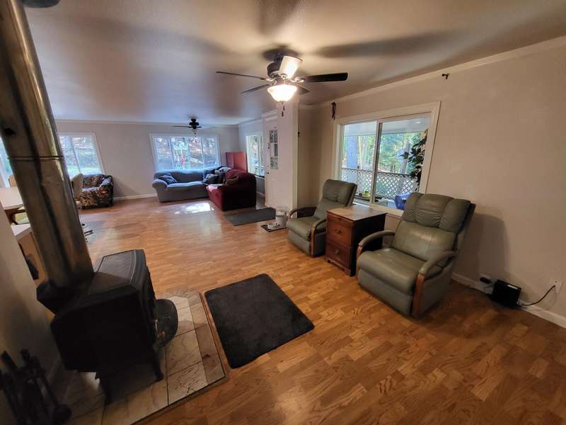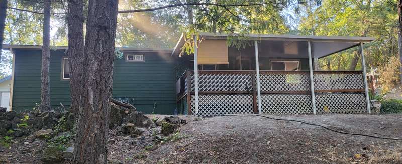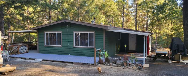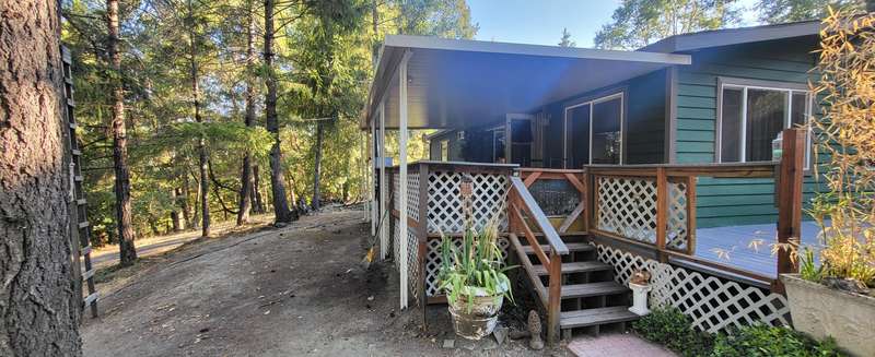 Possible Owner Terms available. Beautifully private property right near the Blueberry Farm only minutes to downtown. This property offers a well kept manufactured home with decks on 3 sides, Covered RV parking and hookups, detached garage/shop and much more. The circle driveway wraps around the house providing the perfect setup for that RV. Plenty of room and plenty of privacy awaits.