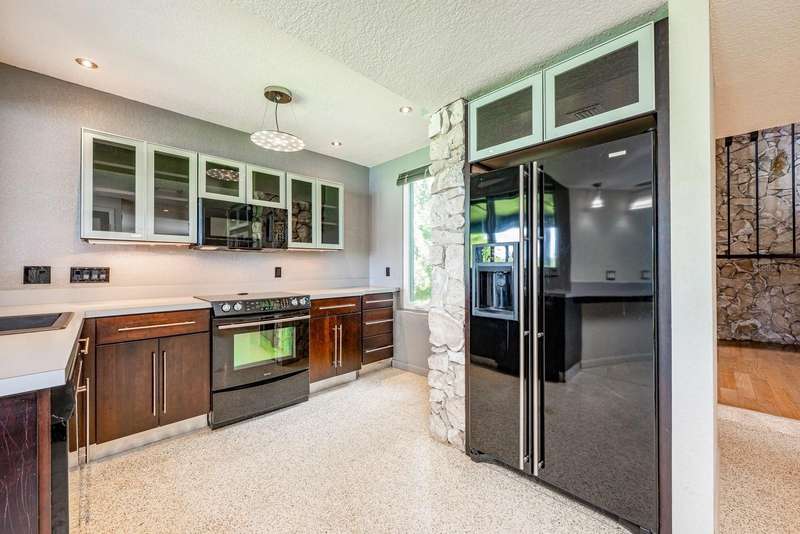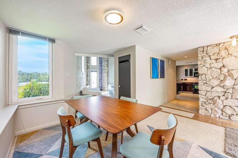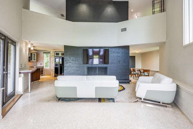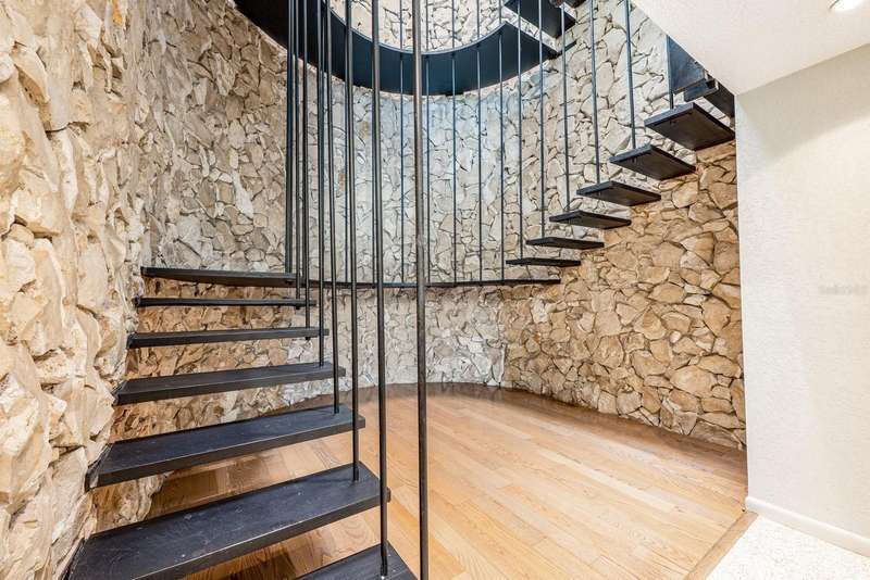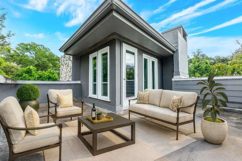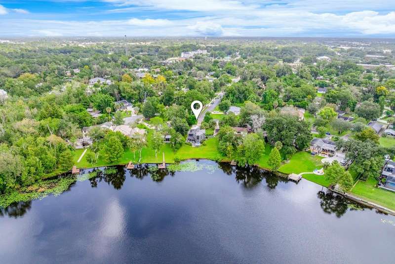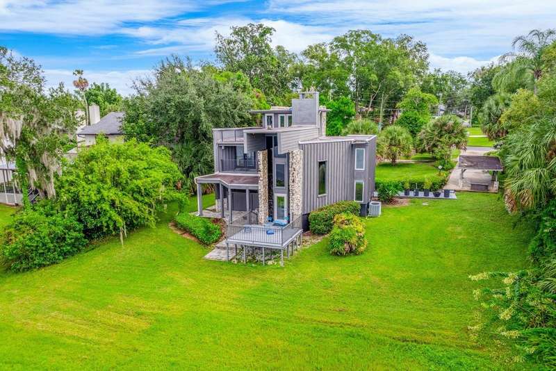 One or more photo(s) has been virtually staged. Ask about a lender provided RATE BUY-DOWN CREDIT on this home *** Seller may consider buyer concessions if made in an offer *** Rare opportunity to own a piece of architectural history on the shores of PRIVATE, SKIIABLE LAKE ADELAIDE – NO HOA, just pure, unfiltered charm and freedom! This one-of-a-kind three story masterpiece originally designed by architect Frank Sheehy for renowned Orlando symphony pianist Bill Stubbs, blends striking mid-century modern design with breathtaking WATER VIEWS and timeless craftsmanship. Tucked away off SR 436 in a quiet community that feels worlds away, yet is just minutes from I-4, shopping, dining, and AdventHealth, making it a true hidden gem. Sitting on nearly HALF AN ACRE (.47), this home is thoughtfully placed to maximize lake views from every level, with MULTIPLE OUTDOOR SPACES on different levels – 4 in total – to soak in the sweeping views. Inside, you will be pleased to find beautiful terrazzo and engineered hardwood flooring, SOARING CEILINGS, and massive windows that drench every room in NATURAL LIGHT. The design is inspired by Frank Lloyd Wright, with an updated, modern kitchen that flows into the living and dining areas – complete with a quartz sink and stylish fixtures. But the real showstopper? The jaw-dropping SUSPENDED STAIRCASE, winding up through the home, with treads hung from steel rods anchored to the ceiling and surrounded by walls of 16” Chert rock – a sculptural centerpiece that must be seen to be believed! Not to be outshined, the spacious living room delivers a 22’ CEILING and cozy wood burning FIREPLACE built into a feature wall. The main living area is paired with a half bath for added convenience. The second floor is home to restful bedroom spaces, and the third floor offers flexible space for a third bedroom, loft, office, studio or reading nook – with direct access to the ROOFTOP DECK and uninterrupted lake views! The home has been well maintained with an UPDATED ROOF (2018), EXTERIOR PAINT (2019), newer DOUBLE PANE ARGON WINDOWS on the lake-facing side, and a newer SEAWALL (10–12’ panels capped with 1’ thick concrete). There is a long circular driveway, covered parking, and the SPRING-FED LAKE is a haven for fishing, boating and skiing – your personal slice of waterfront paradise. If you are seeking a home that breaks the mold with rich architectural character, lakefront serenity, and unmatched lifestyle potential – this is it! Call today to schedule your tour!