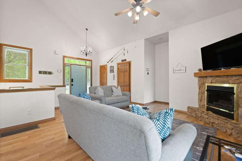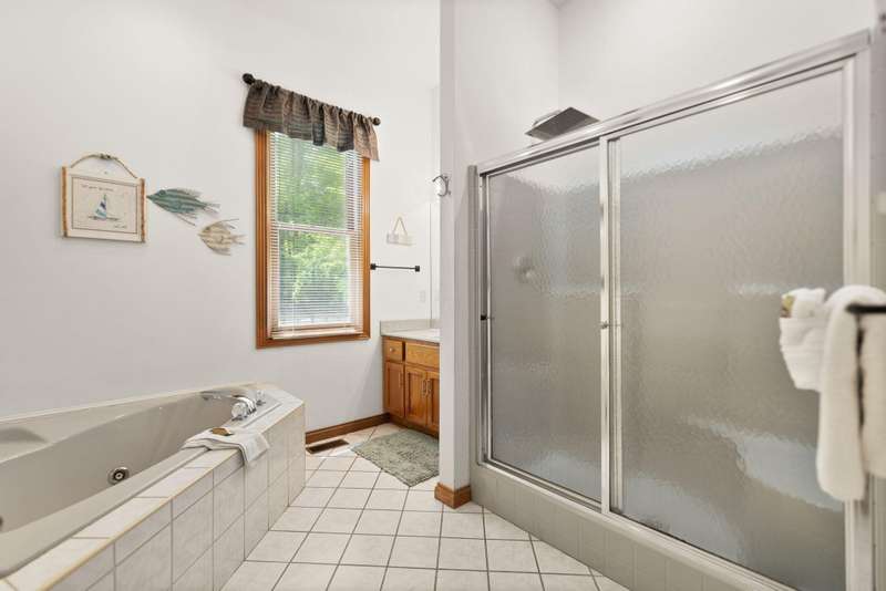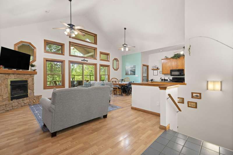 Welcome to this spacious 4 bedroom, 3.5 bath home located in the gated Lake Cumberland Resort. With 2,840 square feet of finished living space, this home offers comfort, convenience, and plenty of room to entertain. Step inside to an inviting open-concept main level with vaulted-ceiling living room with a cozy gas fireplace, an adjoining kitchen, and a dining area perfect for gatherings. The main floor also includes two primary suites, each with private en suite bathrooms-one of which features a relaxing jacuzzi tub. The finished walk-out basement expands your living space with two bedrooms, a full bath, a second living room, and a recreational area complete with a pool table. Outdoor living is just as impressive, with a large wrap-around front porch, a screened-in back porch ideal for relaxing, and a private patio with a hot tub. Resort amenities include three community pools, tennis courts, and a boat ramp just minutes from your driveway. Recent updates provide added peace of mind, including a newer roof and gutters, water heater, and HVAC system. Home is currently a successful vacation rental. This could be the perfect home for you!