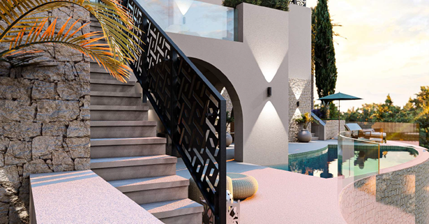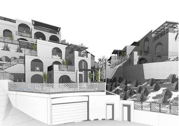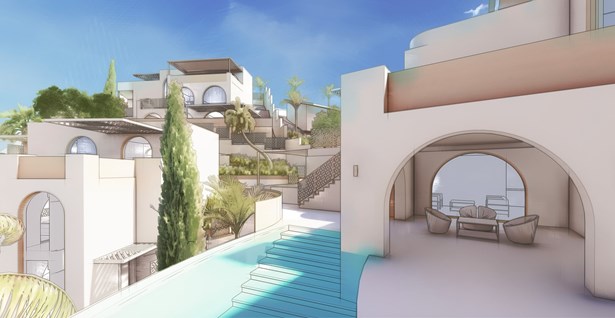 This impressive new project with approved planning permission, comprising three exquisite villas, is located in the idyllic gardens of a 3,420 m² plot in the peaceful hills of Torreblanca. You could start building tomorrow.At these charming and luxurious villas, you are surrounded by lush botanical greenery when you stepout onto your porch.South-facing and private, you can enjoy views of the Mediterranean sea from every window and terrace.The villas feature sumptuous salt-water pools, rejuvinating spas and so much more, so that you can livethe health and wellness-focused lifestyle of your dreams.Adorned with exquisite mosaics and designed in a style which fuses traditional Andalucian elements with modernity, the living space islavish and picturesque yet functional and fresh.You may also choose to capitalise on the summertime investment opportunity that is offered as part ofthe property's ownership.VILLA 1Features 2 bedrooms, 2 bathrooms, laundry room, private bar,outdoo