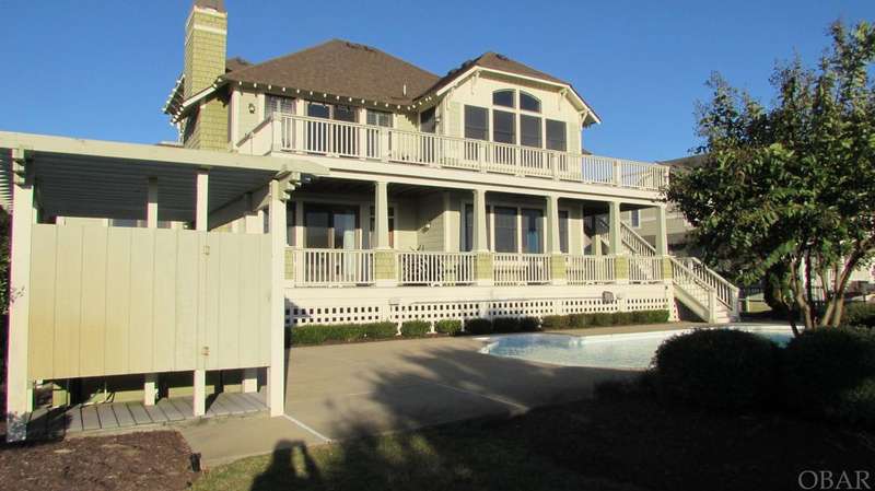 Why not live at OBX in the Currituck Club/VIP style? The best the beach has to offer! A Gated Community w/ beach valet and trolley service. A summer full of fun activities for the whole family. FIVE community pools. Kiddie pools. Walking and bike trails. Fitness and Activity center/ Ping Pong, Billiards, Tennis, Basketball, Volleyball, Cornhole, Bocce ball, & Shuffle board. Walk to shop! Buy this Majestic Masterpiece and enjoy every day! Extensive Quality Millwork and Artisan Craftsmanship abounds! Solid "Mission Style" furnishings throughout. All Living spaces open to wrap around decks that overlook Sensational Sunsets on the Currituck Sound, Immense Private Pool, hot tub, and Hole One on the Currituck Club golf course! NEW roof, NEW exterior doors, NEW sidewalks... FOUR On-Suite Bedrooms open to back decks and pool area. Bunk house room. Reading Crow's Nest. Stone Fireplace. Wood floors. Granite. - Superior upgrades throughout the home. Game room. A Must see to appreciate the Solid Intricate Mastery of this Corolla/OBX Home! Owner has just repaired all exterior, repainted, NEW pool liner, NEW hot tub/spa surround... Owner working and getting property in tip top shape. 2021 has about $78K owner's net income so far!