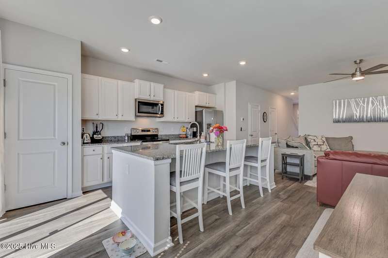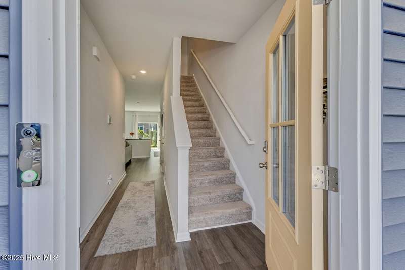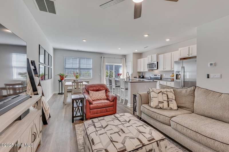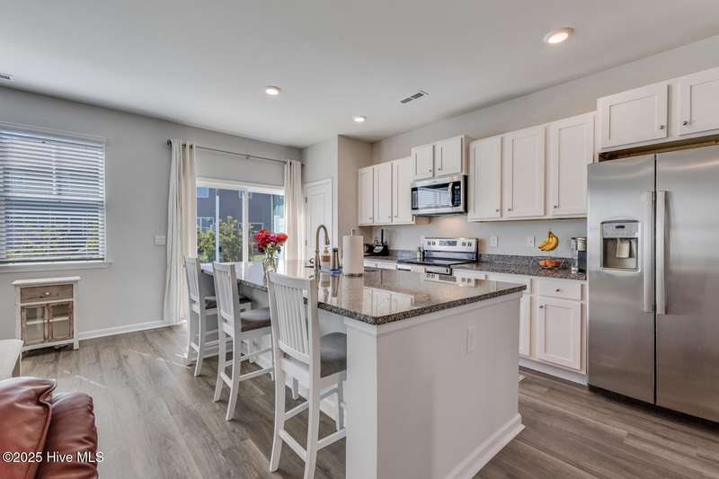Discover easy coastal living in the riverfront community of Grand Bay! This nearly new 3-bedroom, 2.5-bath townhome offers low-maintenance comfort, thoughtful design, and access to the Cape Fear River. The open-concept main level features a stylish kitchen with granite countertops, stainless steel appliances, and a versatile island that flows into the living area and out to a private patioperfect for relaxing or entertaining. A pantry, under-stairs storage, and convenient half bath complete the first floor. Upstairs, the primary suite boasts 9' ceilings, a spa-like bath with double vanity and walk-in shower, plus a generous closet. Two additional bedrooms and a full bath provide flexible space for guests, hobbies, or a bright home office. A one-car garage with shelving and smart-home featuresincluding a touchscreen control panel, video doorbell, and programmable thermostatadd convenience and security. Grand Bay residents enjoy resort-style amenities: a community pool with pavilion, boardwalk and gazebo overlooking the Cape Fear River, a private beach, and kayak launch with direct access to Shark Tooth Island. Next door, River Road Park offers a fishing pier, boat ramp, picnic areas, and a playground. Ideally located off River Road, this home is just minutes from Carolina Beach, downtown Wilmington, shopping, dining, and entertainment. Whether you're after poolside relaxation, riverfront sunsets, or coastal adventures, Grand Bay delivers the lifestyle you've been craving.