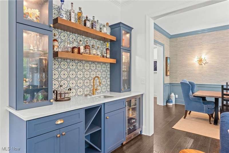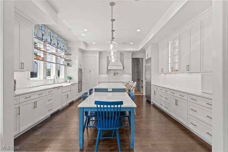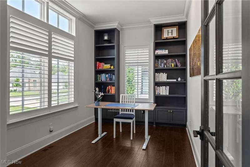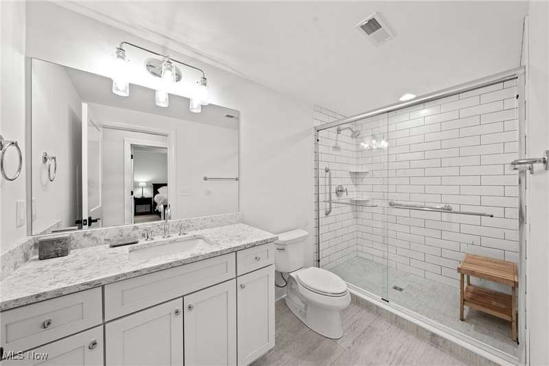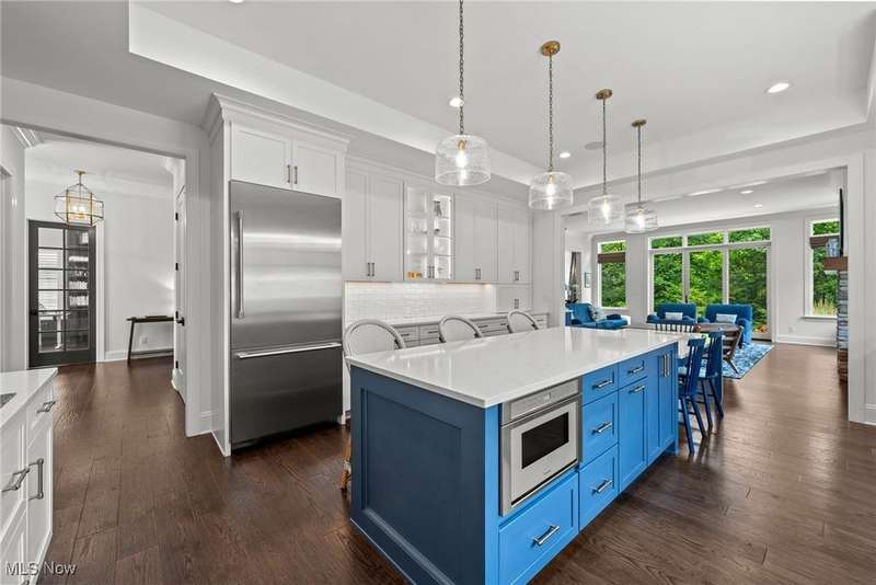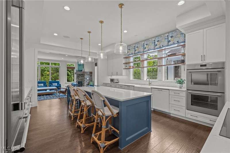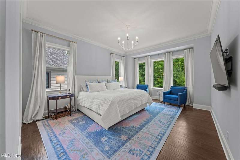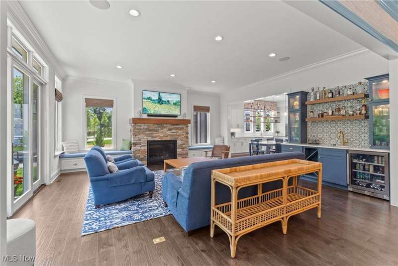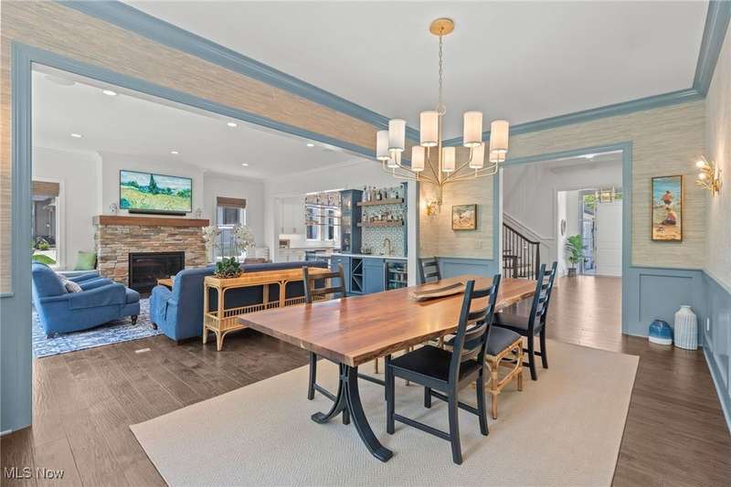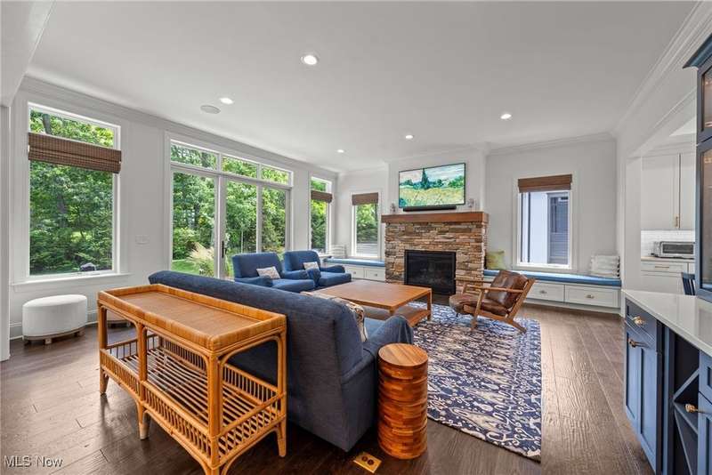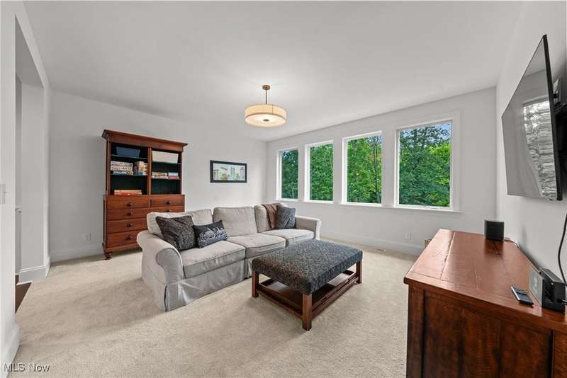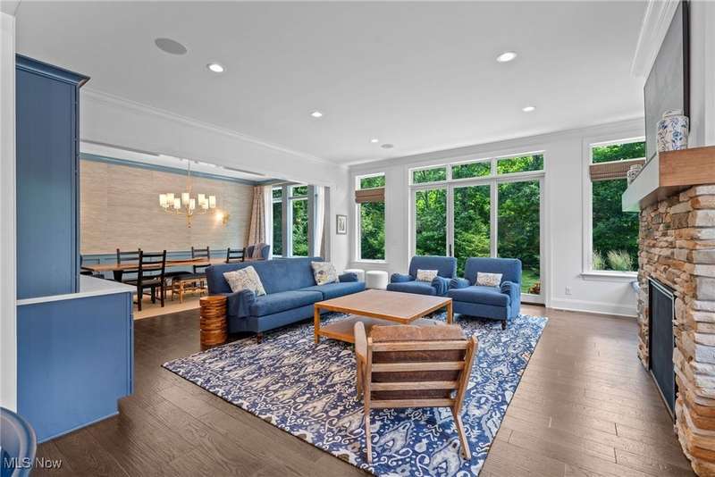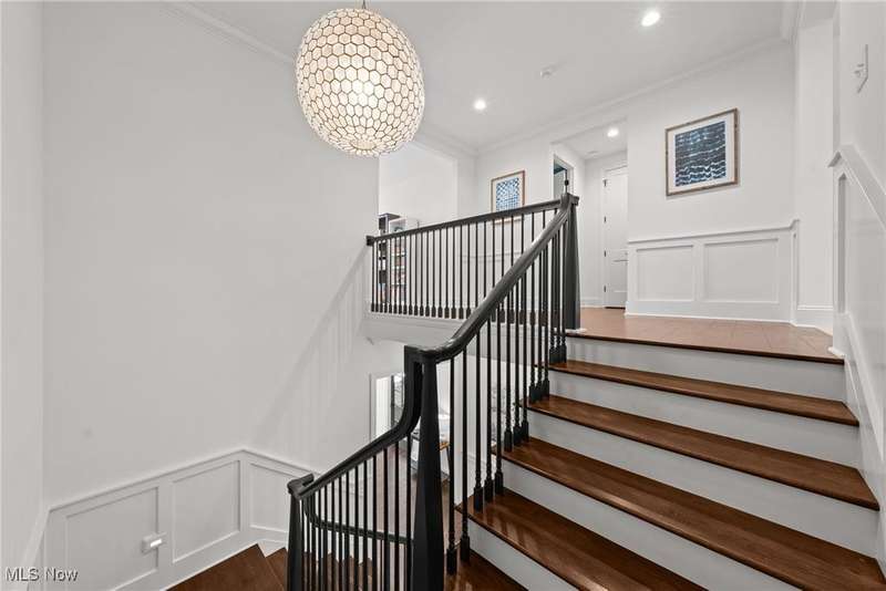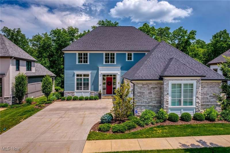 This nearly new manor home was custom designed and built in sought after Moreland Commons. With over 4500 square feet of living space and an additional 1600+ finished square feet in the lower level, this is the perfect family home. A wide open floor plan features 10' ceilings, 8' doors, hardwood floors, and a luxurious first floor owner's suite. The kitchen in this home is simply outstanding featuring a huge center-island, Quartz countertops, built-in breakfast bar, stainless steel appliances, and a walk-in butler's pantry. The kitchen is open to the fabulous great room featuring a wet bar, fireplace, and floor to ceiling sliding glass doors which open onto the stone patio. There is a grand formal dining room as well as a private library. Relax in the first floor owner's suite featuring a huge walk-in dressing room and gorgeous bathroom. Upstairs, you will find an additional family room, 4 bedroom suites all with private bathrooms, and a second laundry room. The finished lower level is amazing and includes another guest suite, full bathroom, exercise room, recreation room, and a bourbon tasting room (could be an office.) Summers will be enjoyed on the stone patio that has a gas stone fire pit and overlooks the wooded rear yard. This home is built with the finest materials, the attention to detail is evident throughout, and it is nearly new. Moreland Commons is conveniently located across from Orange Schools, within walking distance to the library, shopping, and fine dining!