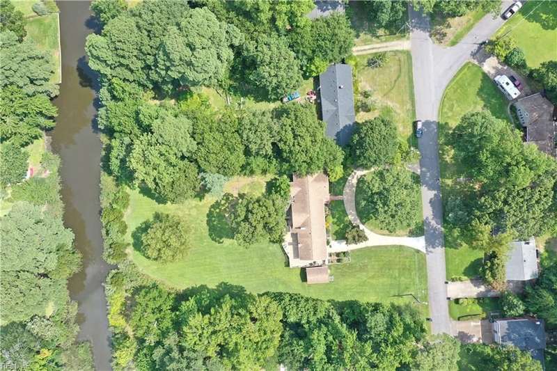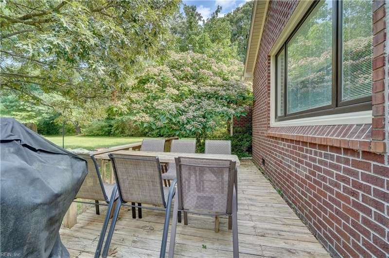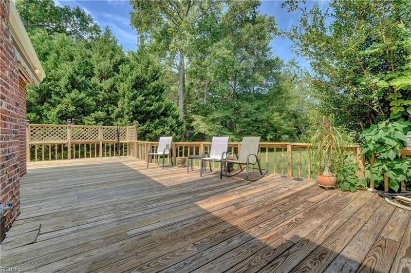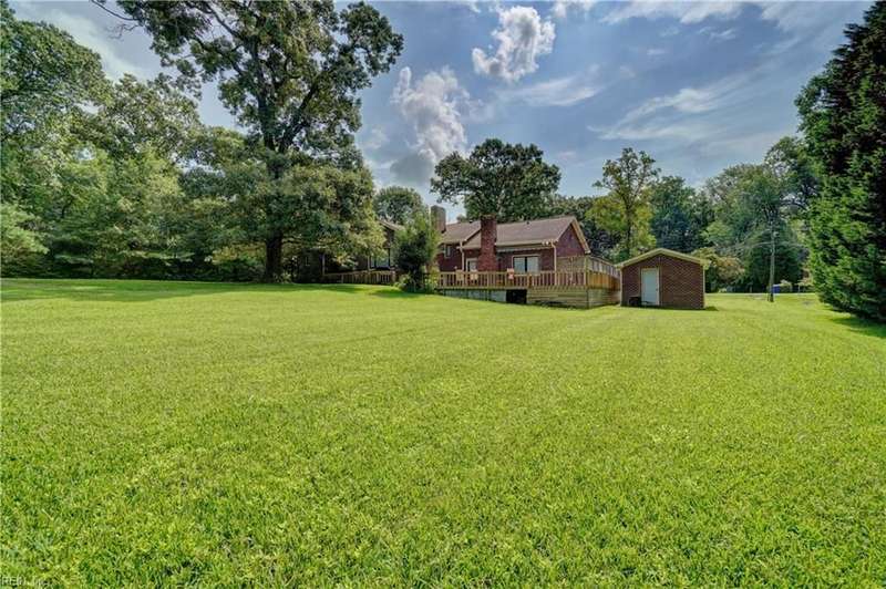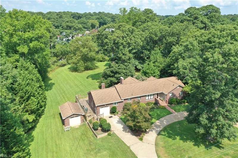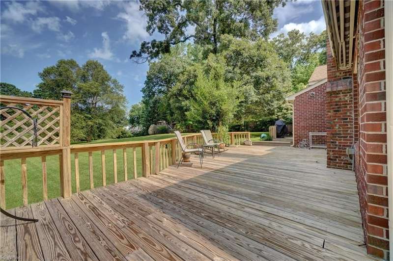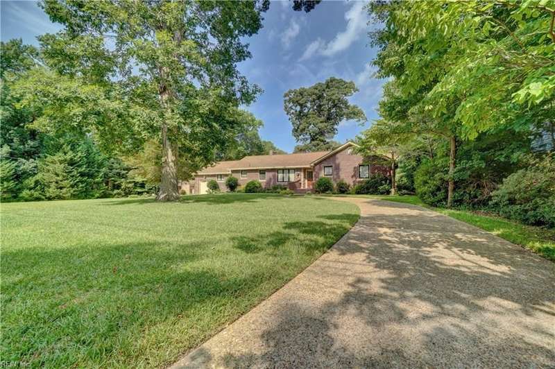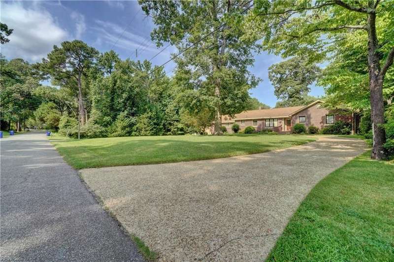 WELCOME TO BEAUTIFUL BELAIRE, ONE OF NORFOLK'S FINEST NEIGHBORHOODS WITH LARGE LOTS AND BRICK RANCHES WITH STURDY MATURE TREES AND BUILT BY WAYNE MCLESKEY. THIS HOME IS A RARE FIND WITH A 1 ACRE LOT AND A HUGE BRICK RANCH ON TIDAL WETLANDS WATERFRONT AND A CIRCULAR DRIVEWAY WITH DETACHED GARAGE AND 2 OUTBUILDINGS FOR CRAFTING OR PLAYHOUSE. HUGE BEDROOMS...CARPETS HAVE BEEN REMOVED TO REVEAL THE WONDERFUL HARDWOOD FLOORS. BEAUTIFUL BAY WINDOW IN THE DEN LOOKS OUT OVER THE HUGE BACK YARD OVERLOOKING THE TIDAL WETLANDS WATERFRONT...A NATURAL PARADISE! MATURE TREES AND LANDSCAPING GIVE YOU GREAT PRIVACY. 3 FULL BATHS BUT SOME UPDATES WILL BE NEEDED. EFFICIENT GAS RADIANT HEAT AND GAS FIREPLACE IN COZY DEN! LARGE WRAP AROUND DECK PERFECT FOR ENTERTAINING OR RELAXING...EASY TO SHOW...HURRY! THIS CAN'T LAST LONG...DON'T MISS IT BY WAITING TO SEE IT TOMORROW!