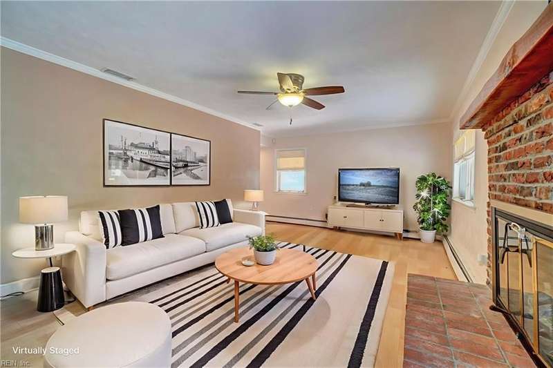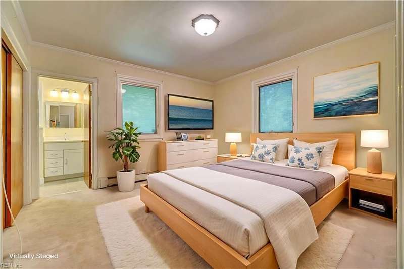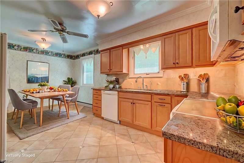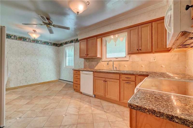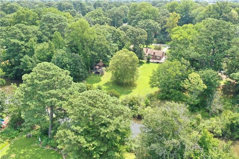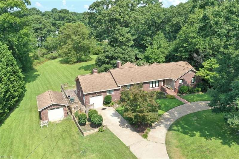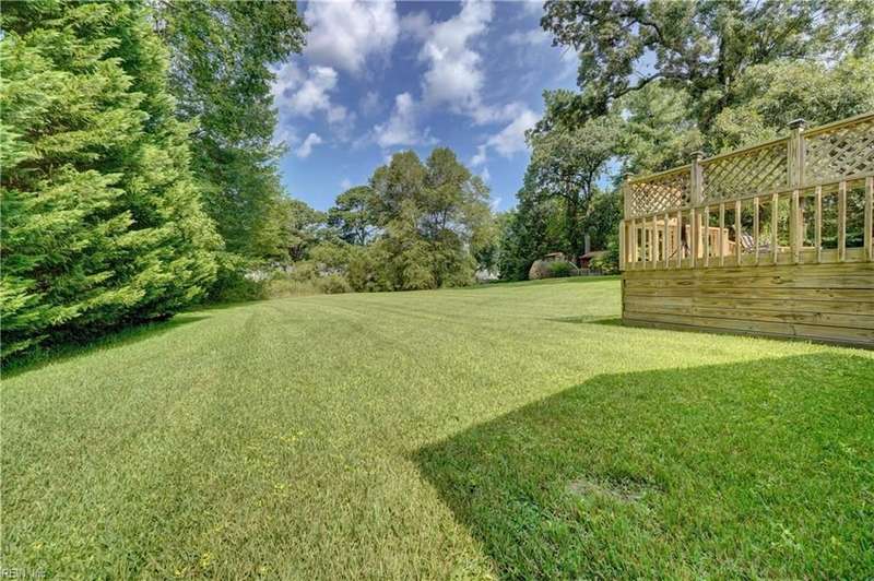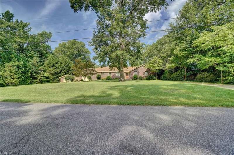 WELCOME TO BEAUTIFUL BELAIRE, ONE OF NORFOLK'S FINEST NEIGHBORHOODS WITH LARGE LOTS AND BRICK RANCHES WITH STURDY MATURE TREES AND BUILT BY WAYNE MCLESKEY. THIS HOME IS A RARE FIND WITH A 1 ACRE LOT AND A HUGE BRICK RANCH ON TIDAL WETLANDS WATERFRONT AND A CIRCULAR DRIVEWAY WITH DETACHED GARAGE AND 2 OUTBUILDINGS FOR CRAFTING OR PLAYHOUSE. HUGE BEDROOMS...CARPETS HAVE BEEN REMOVED TO REVEAL THE WONDERFUL HARDWOOD FLOORS. BEAUTIFUL BAY WINDOW IN THE DEN LOOKS OUT OVER THE HUGE BACK YARD OVERLOOKING THE TIDAL WETLANDS WATERFRONT...A NATURAL PARADISE! MATURE TREES AND LANDSCAPING GIVE YOU GREAT PRIVACY. 3 FULL BATHS BUT SOME UPDATES WILL BE NEEDED. EFFICIENT GAS RADIANT HEAT AND GAS FIREPLACE IN COZY DEN! LARGE WRAP AROUND DECK PERFECT FOR ENTERTAINING OR RELAXING...EASY TO SHOW...HURRY! THIS CAN'T LAST LONG...DON'T MISS IT BY WAITING TO SEE IT TOMORROW!