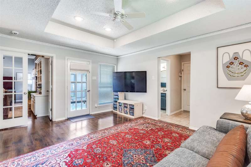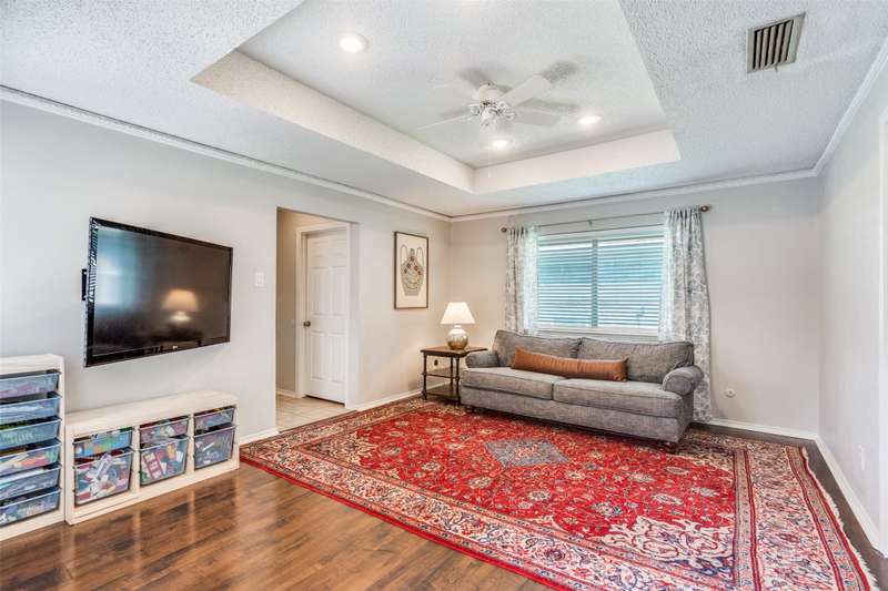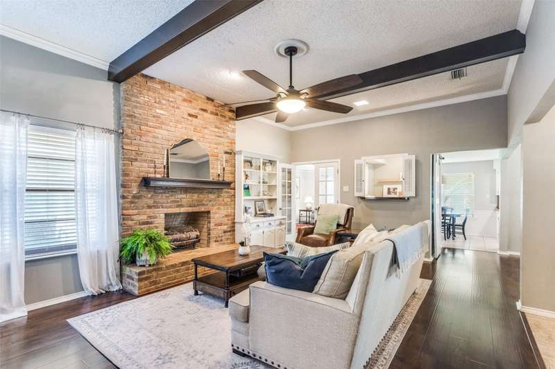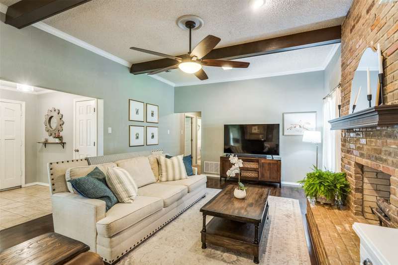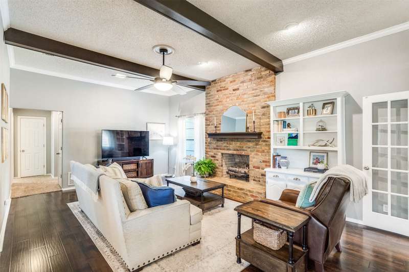 Beautifully updated and well maintained 3 bed, 3.1 bath home in the desirable University Estates South neighborhood! This spacious single-story home features 2,171 SF with an open layout including 2 large living areas, formal dining, and an eat-in kitchen. The kitchen boasts ceramic tile, energy-efficient appliances, electric cooktop, and pendant lighting. The oversized primary suite offers a sitting area, double Bathrooms.(no more sharing!), dual vanities, dual showers and linen closet. Ceilings with exposed beams, gas log fireplace, flex space that can be used for homework station or office space and full-size utility room add comfort and function. Enjoy a lush, landscaped yard with mature trees, sprinkler system, and extended patioperfect for entertaining. Rear-entry garage. Located in Richardson ISD near parks, shopping, dining, and major highways. Dont miss this stylish, move-in ready gem!