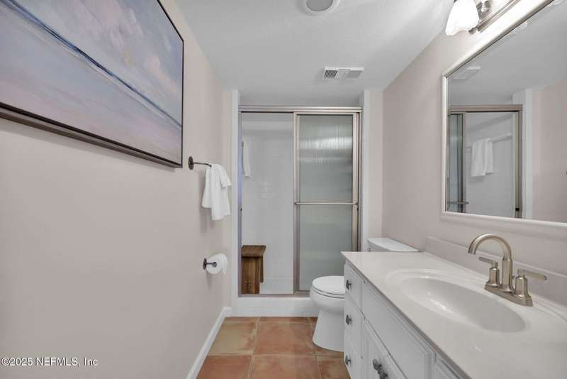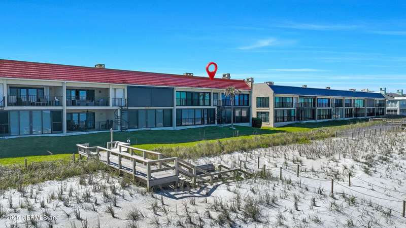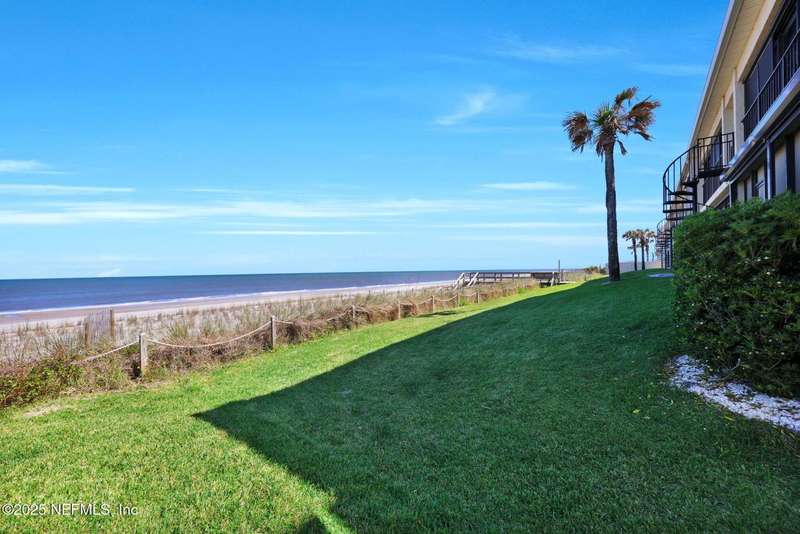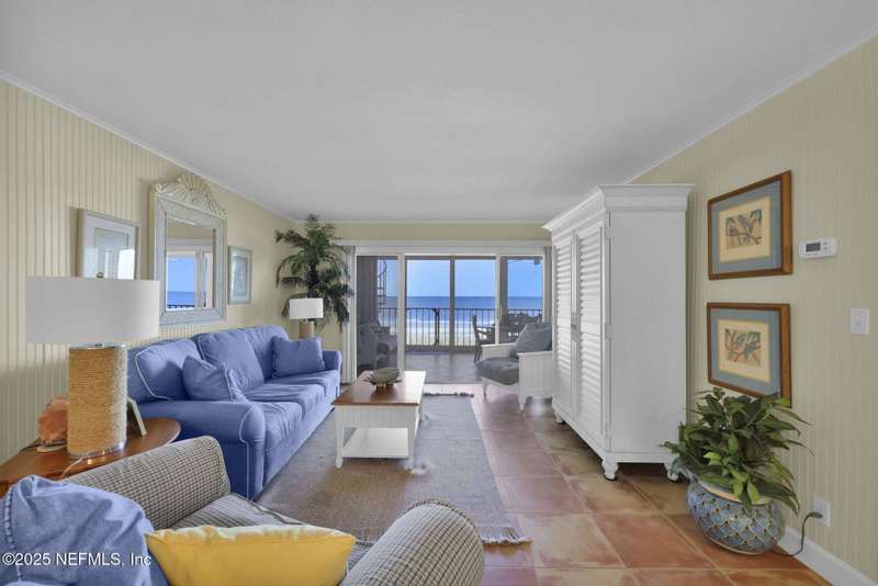SEE VIDEO. ONE OF THE LOWEST PRICED OCEANFRONT HOMES IN 32082. A true example of a quintessential Ponte Vedra Beach getaway. Highly desired & seldom available 2 bedroom ground floor oceanfront condo with 1 car garage. Fully furnished, The living areas are aligned for an east-to-west flow of natural sun. Spacious glass enclosed sunroom (24'x12' not included in sq.ft) spans the entire unit & is the focal point for morning sunrises over the Atlantic. Living / dining room opens to the kitchen with full laundry & all Whirlpool appliances. Primary suite enjoys its own coastal panoramic for a tranquil aesthetic. Additional suite & guest bath to accommodate your closest friends & family. 1 car garage with new epoxy floors is fully enclosed to store all your beach gear or golf cart. From the oceanfront lawn, descend down the boardwalk to a secluded private access beach. Enjoy the citified comforts of nearby world-class beach clubs.