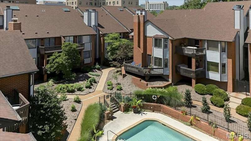 Fantastic 2 story townhouse in great location near all the amenities of the Central West End! Located in a gated community, within close proximity to Whole Foods Supermarket, St Louis Public Library, Barnes-Jewish Hospital, and numerous restaurants, this end unit has a flexible floor plan that can be used as 3 bedrooms with an office, or EVEN as 4 bedrooms. This top floor unit awaits! Greeted by a 2 story foyer, you'll love the huge, Living/Dining combo Great Room, with wood floors, fireplace, and a deck that overlooks the complex. Amazing Kitchen with stainless appliances, granite countertops, pantry, and open breakfast bar. Powder Room, Bedroom, and Primary Ensuite, with walk-in closet and deck, round out main floor. Upstairs, you'll find another large bedroom, connected to hall bath for potential ensuite, another bedroom, and EVEN 2nd Floor Laundry. Outside basement stairs lead to 2-car, tuck-under, tandem garage, with storage room. Community pool and code access property allows to enjoy your city living!