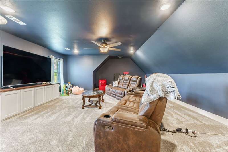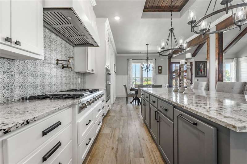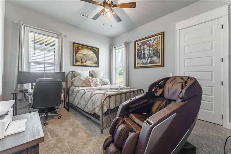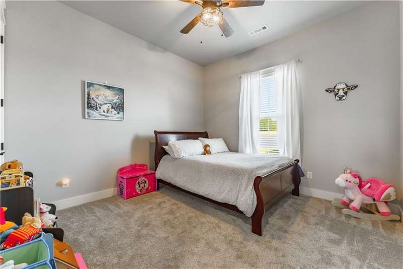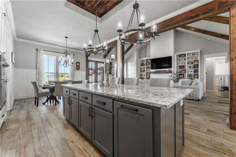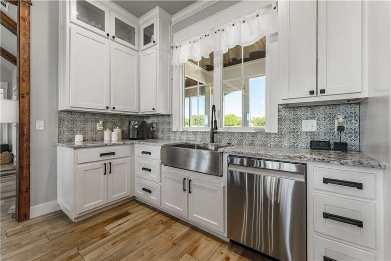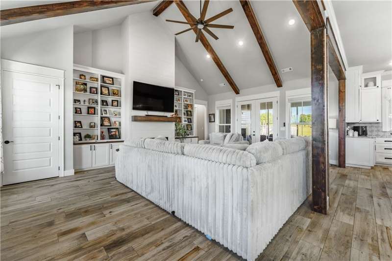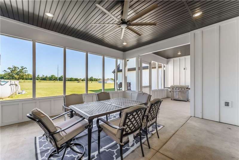 Welcome to this modern farmhouse perfectly positioned on 3 beautiful, flat acres! Impeccably maintained, this home was thoughtfully and intentionally designed for gathering. It offers predominantly main-level living with 3 bedrooms and 2 baths, and a spacious bonus/game room with a full bath upstairs that could be a 4th bedroom. An entertainers dream, the fully equipped gourmet kitchen offers practicality and style with a nice island bar and spacious dining area, a charming coffee bar and an oversized hidden pantry. The kitchen opens to the living room featuring a grand vaulted ceiling and built-ins flanking the TV/entertainment space. The living room extends to a fabulous screened in patio-a perfect setting for dining or kicking back to watch a game. Luxury with everyday comfort. The primary bedroom boasts a spacious walk-in closet connected to the laundry room, a spa-like en suite bath with freestanding tub and custom shower. Secluded, beautifully landscaped, 3-car garage. A few miles to XNA. A must see!