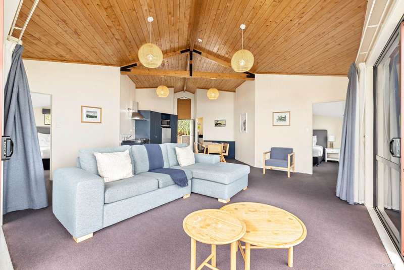 A fantastic opportunity to own the perfect holiday retreat with this fully furnished cliff-top chalet situated within Castaways Resort. This chalet is the perfect escape, offering more than just a place to stay. With expansive views overlooking the wild Tasman Sea and Karioitahi Beach, the open-plan living area features dual ranch sliders that open to the deck. This seamless indoor-outdoor flow invites you to relax and enjoy magnificent sunsets, the calming sound of the waves, and the invigorating sea air. Inside, the chalet is designed for comfort and convenience. Each of the two bedrooms has its own private ensuite, while the fully equipped kitchen makes preparing meals effortless. For ultimate indulgence, the on-site Castaways Restaurant & Bar and Bersantai Day Spa are just moments away, ensuring every stay feels like a true holiday. This is an opportunity to acquire a holiday home that works for you. Owners can enjoy their clifftop retreat for up to 32 weeks per year. When you’re not there, the property is expertly managed and rented out by Castaways Resort, providing an income stream to offset your ownership costs. Located approximately 70kms from Auckland CBD, 114kms from Hamilton and 60km from Auckland Airport, the Chalet offers a peaceful and convenient getaway from city life without sacrificing accessibility. Don’t miss your chance to secure this premier clifftop property. Contact us today to learn more about how you can make this dream holiday home your reality.