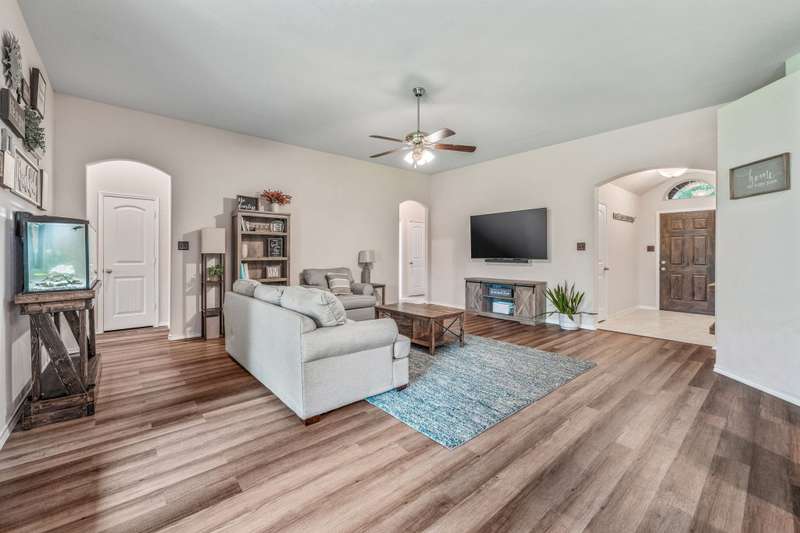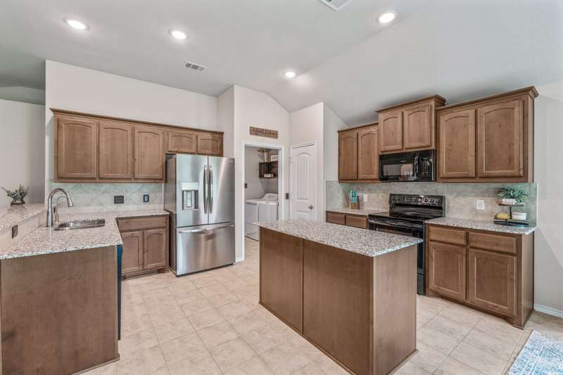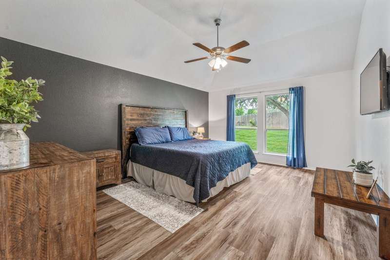 Welcome to this beautifully crafted 4-bedroom, 2-bath home nestled in a desirable neighborhood with convenient access to the lake and community amenities. Built with timeless brick and stone exterior, this home offers exceptional curb appeal and quality construction. Step inside to an inviting open floor plan featuring high ceilings and abundant natural light. The spacious living and dining areas flow seamlessly into a gourmet kitchen, complete with a large center island, ample counter space, perfect for entertaining or everyday living. 4 generously sized bedrooms, offering comfort and privacy for family or guests. The primary suite boasts a well-appointed en-suite bathroom and walk-in closet. Enjoy outdoor living with nearby lake access, walking trails, and neighborhood amenities that enhance your lifestyle. Whether youre relaxing at home or exploring the great outdoors, this property combines comfort, convenience, and charm.