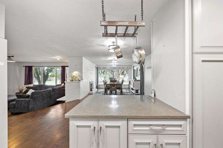 MLS# 286393 Welcome to this classic brick beauty located on a desirable large corner lot in one of Kennewick’s most festive neighborhoods. Christmas Carol Lane! Surrounded by mature landscaping, this home offers two covered patios—perfect for enjoying seamless indoor-outdoor living year-round.At the heart of the home, you'll find a beautifully updated kitchen with peninsula seating and a special cabinet for your kitchen-aid or other large appliances. Ideally situated between the cozy sunken living room and the spacious family room. Whether you're hosting guests or enjoying a quiet night in, this layout is designed for comfort and connection.Newer laminate flooring and a stylish two-sided gas fireplace add warmth and character to the living spaces. The master suite is just the right size and includes access to a versatile bonus room—ideal as a home office, hobby space, or quiet retreat.Outside, the fully fenced backyard features a storage shed, a double gate with drive-through access, and convenient open RV parking plus electric car charging available in the two car garage! Don’t miss the opportunity to own this home in a well-loved neighborhood—schedule your private tour today!