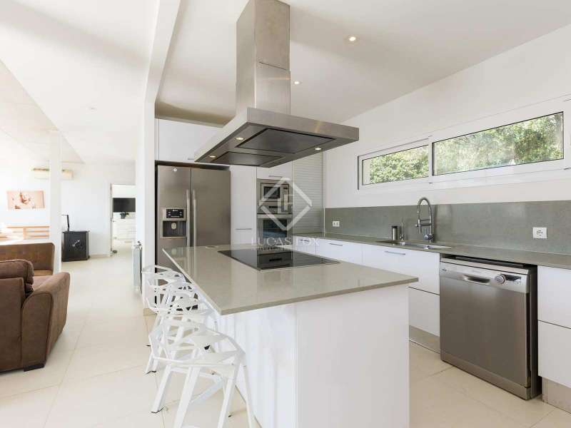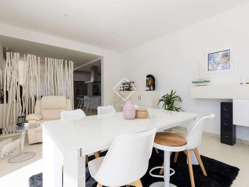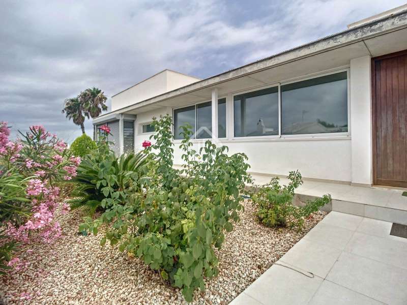 Lucas Fox presents this villa with sea views of 256 m² built on a comfortable and spacious plot of 1145 m² in the south of the island of Menorca. This villa is characterized by its open and spacious spaces, as well as the luminosity provided by the large windows that surround the entire property and that facilitate entry and access to the garden area through any of its rooms. The property is distributed on a single ground floor. At the entrance, we find a living-dining room with access to a terrace covered by a retractable awning, open kitchen, utility room room, living room, a double bedroom with a private bathroom and two double bedrooms that share a bathroom. Through an exterior staircase, we reach the terrace with a solarium with spectacular views of the sea. The house has built-in wardrobes in all bedrooms, double-glazed windows, heating by radiators and hot-cold air conditioning by splits in all rooms. Exterior, we have an ideal annex as a guest house, where there is a double bedroom and a bathroom. In addition, in that same construction, we have a garage of about 36 m². The house is surrounded by a garden area with drip irrigation, tricolor stone, palm trees and varied vegetation. We have a terrace area where there is a porch between the main house, the annex and the pool area. A property near the sea, ideal to live all year round or spend the summer season with family and/or friends. Contact us for more information or to arrange a visit.