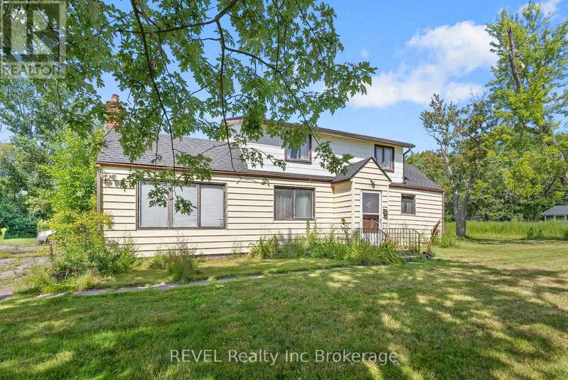 Many apparent possibilities fort this desirable property in Crescent Park. Large house in need of repair with extra severable lot. Possibility of 3 separate lots with house demolition & minor variance approval. Lot is irregular 162.94 ( f)x 133.02 (d)x 230.09 (d) equaling 38,632 SqFt. Large 28x28 mechanics garage with wood stove. Lovely private backyard with mature trees with woods behind. Above ground pool. Close to main shopping area. Walk to beach, Friendship Trail & Ferndale Park. 8 min to Peace Bridge. Main house roof / 21. Garage and F.R. roof 2022. House to be sold in as is condition (id:7434)