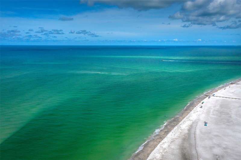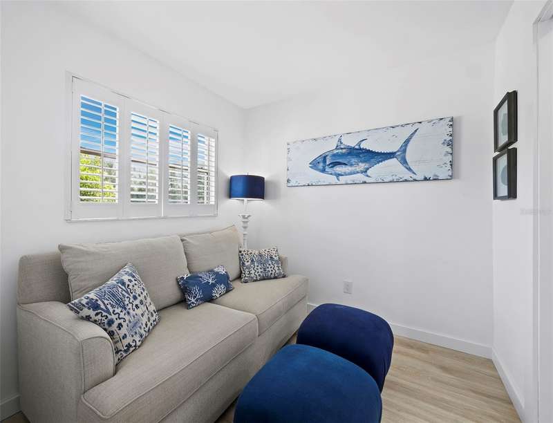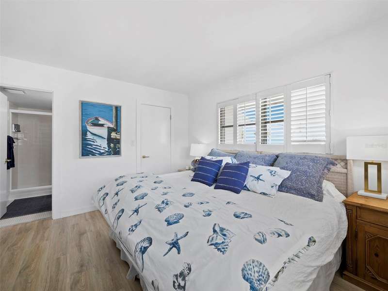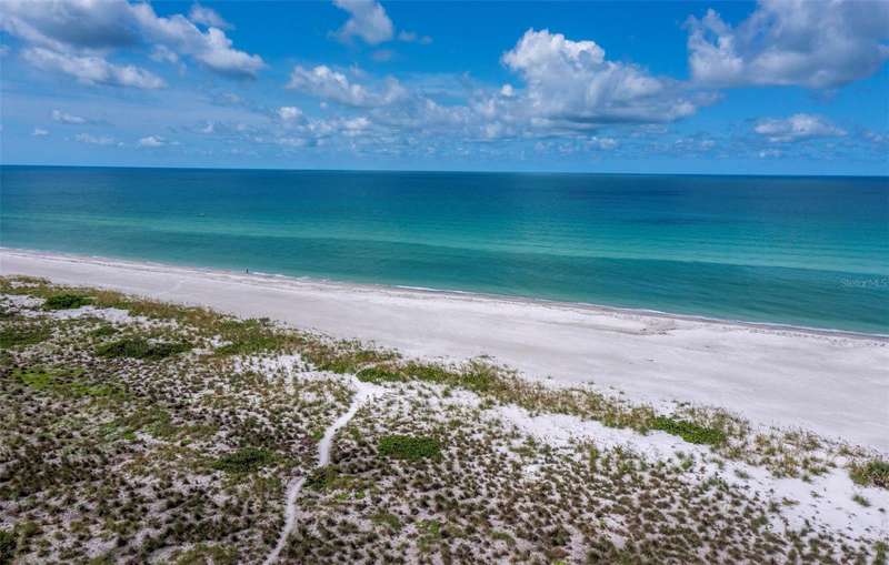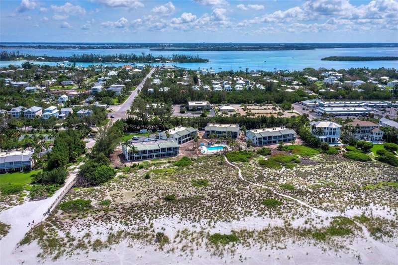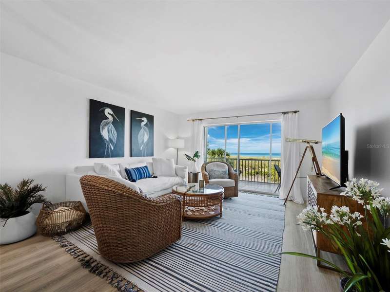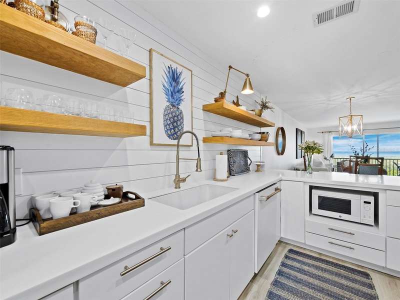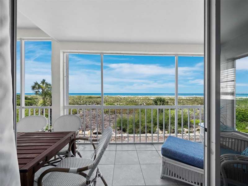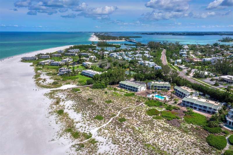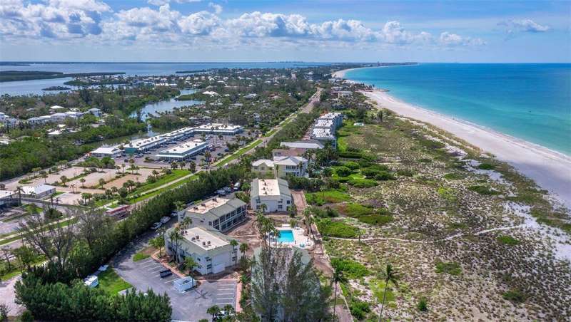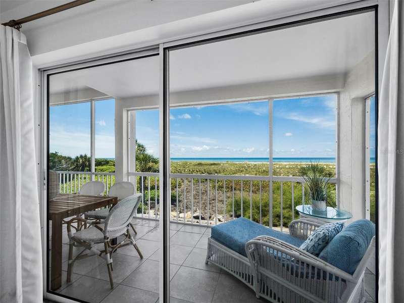 Experience elevated coastal living in this beautifully renovated, second-floor beachfront condominium, offering sweeping Gulf views and the tranquility that comes with a higher vantage point. Nestled within the intimate, gated community of Sea Pines on the serene north end of Longboat Key, this end-unit residence effortlessly blends updated sophistication with the soothing rhythm of the sea. This light and airy floor plan features two bedrooms, two full baths, and a flexible den that easily converts to a third sleeping area for guests. Designed with a relaxed, coastal aesthetic, the interior showcases neutral flooring and paint tones, stylish plumbing fixtures, updated lighting, plantation shutters, and solid surface countertops throughout. The kitchen is a true showpiece, offering Gulf views, modern cabinetry, sleek open shelving, shiplap accent walls, a statement tile backsplash, premium GE Café appliances, and a large pantry—perfect for any home chef. The primary suite is a peaceful retreat with views of the Gulf and community pool, a generous walk-in closet, and a spa-style en-suite featuring a spacious walk-in shower. Step outside from either the living area or the primary suite onto a 26-foot screened lanai—ideal for morning coffee, al fresco dining, or simply unwinding to the sound of waves and the sight of spectacular sunsets. The guest suite offers its own en-suite bath and large walk-in closet, providing comfort and privacy for visitors. A full-size, side-by-side washer and dryer add everyday convenience. Sea Pines is a boutique complex of just 28 residences, offering a relaxed and secure lifestyle with gated entry. Amenities include a heated pool with lounging and dining areas, a private beach access path, tropical landscaping, outdoor grilling stations, and a pet-friendly atmosphere with strong rental potential. Don’t miss this rare opportunity.
