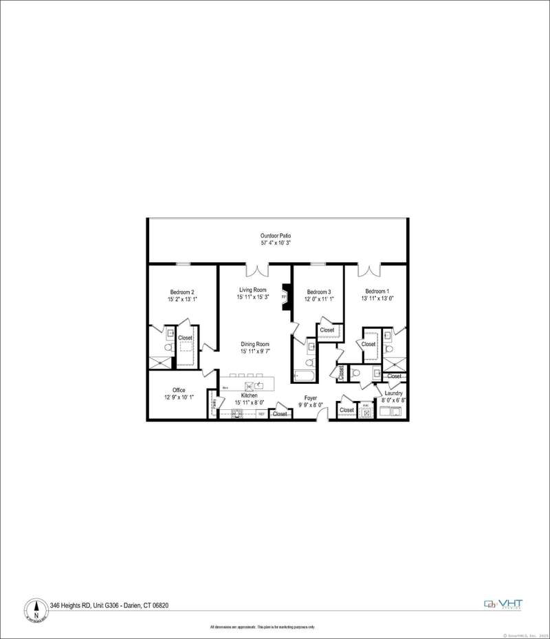 Welcome to this expansive 1,974 sq ft residence at Heights Crossing-Darien's premier new development offering elevated coastal living across the street from the Metro North station. This 3-bedroom, 3.5-bath home features three private en-suite bedrooms, a dedicated office, and a spacious open-concept layout filled with natural light from skylights and full-sized windows or French doors in every bedroom. The gourmet kitchen is outfitted with Wolf and Subzero appliances, a quartz waterfall island, and flows seamlessly into the living and dining areas, anchored by a gas fireplace and soaring ceilings. Step through French doors in the living room or primary suite to your expansive private patio-perfect for entertaining or unwinding outdoors. A formal foyer, walk-in closets, luxurious baths with separate full-size showers or tub, and an in-unit laundry room with washer and dryer complete the well-appointed interior. Enjoy covered parking, a dedicated storage locker, and access to premium amenities including a fitness and wellness center, golf simulator, breakout office spaces, and a fireside resident lounge and event space. Retail shops, restaurants, a grocery store, and pharmacy are moments away-with Darien's beaches and parks minutes from your front door. Luxury, location, and lifestyle-all in one. Available September 1st.