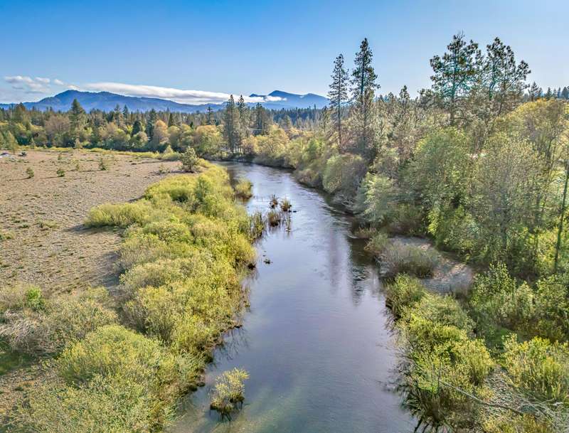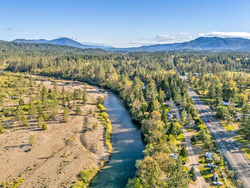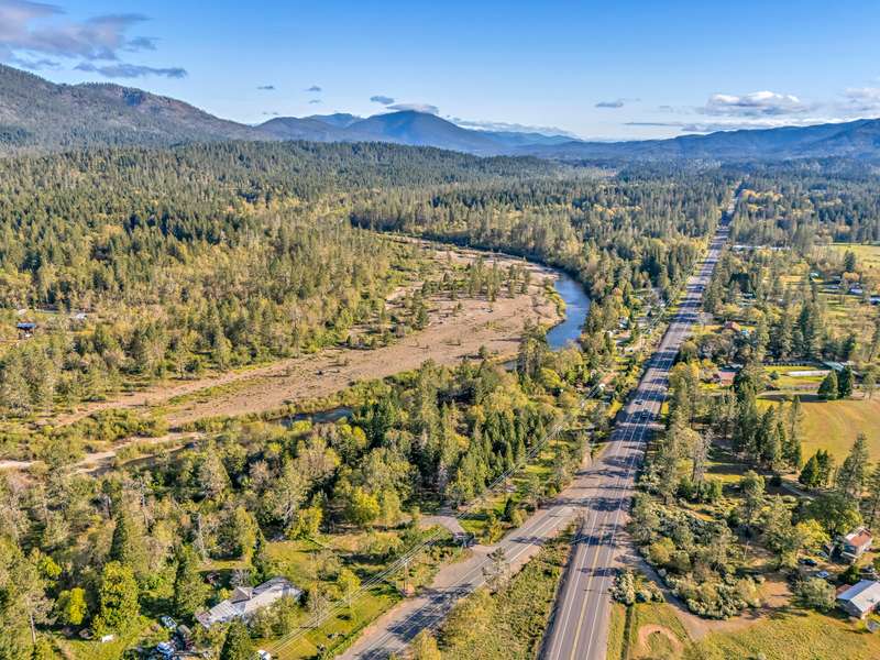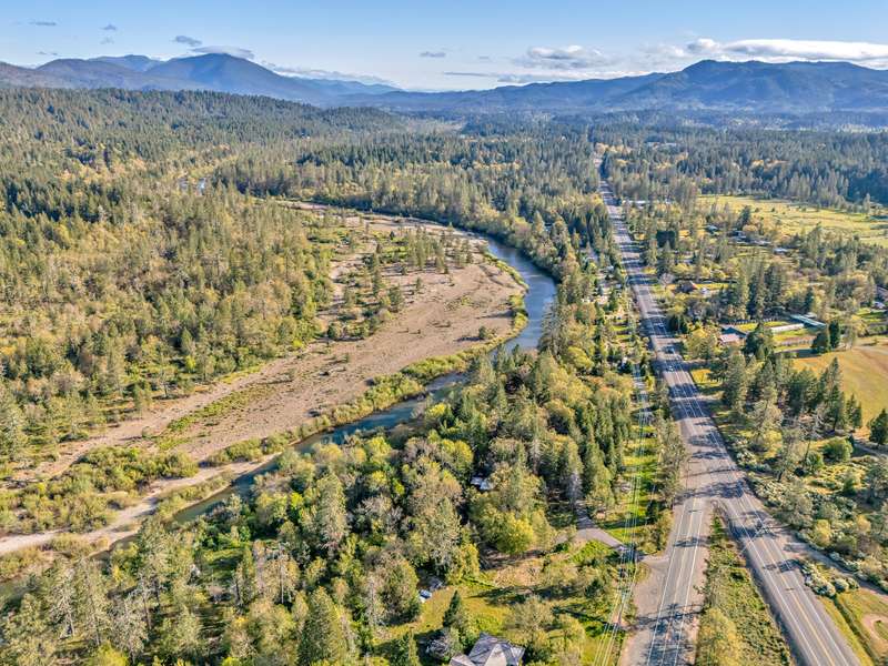 Your Riverfront Dream Awaits! Discover 5.6 mostly flat and fully fenced acres with rare river frontage on both sides of the water—a truly unique opportunity for nature lovers, homesteaders, or dream-home builders. Enjoy direct river access, panoramic river views, and valuable river water rights, perfect for those who crave serenity and self-sufficiency. This lush property features mature shade trees, sprinkler-irrigated lawns, and two potential home sites, giving you flexibility to design your ideal living setup. An older single-wide mobile home (given no value) offers an easy opportunity to replace with your custom build. Located just minutes from Hwy 199 for quick commutes and daily conveniences, yet tucked away in your own peaceful riverside retreat. Properties like this don't come around often—don't miss your chance to own a piece of Southern Oregon paradise!