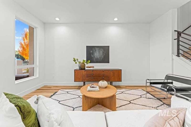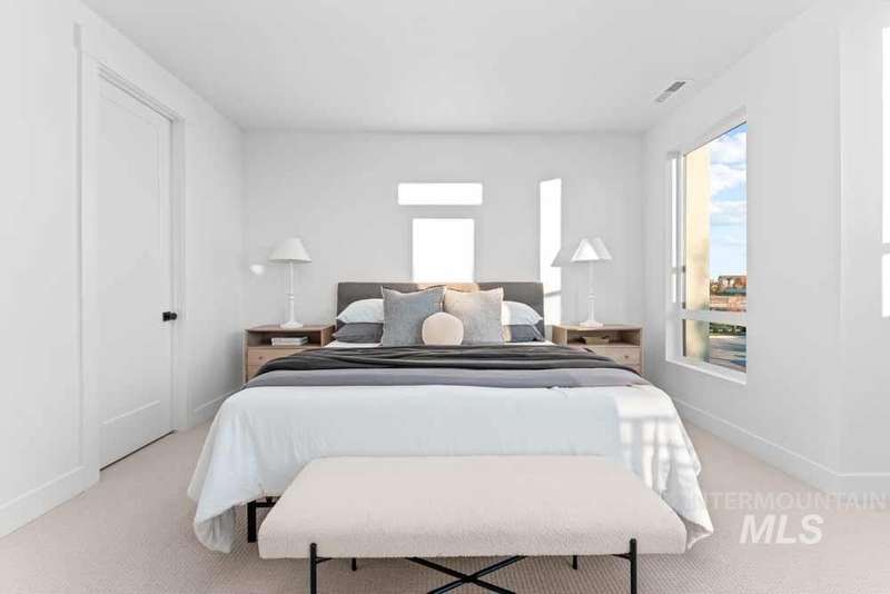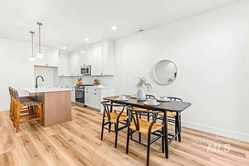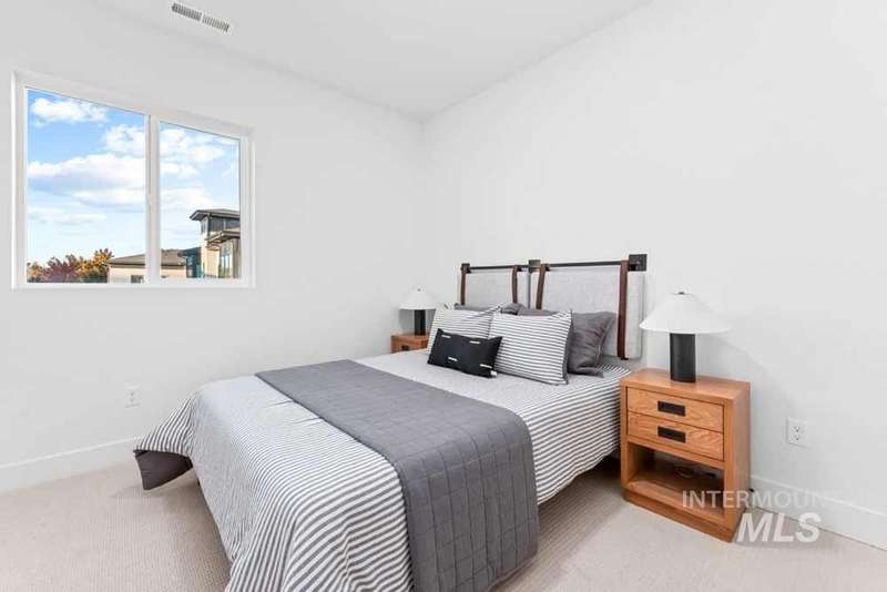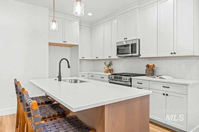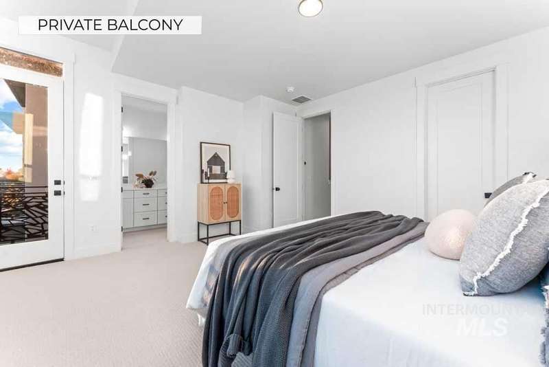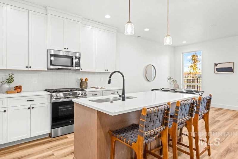 Introducing The Dayton at Molinari Park — the newest upgraded floorplan featuring ceiling-height cabinetry, metal railing, and 8-foot doors throughout! Set in the heart of downtown Eagle, this luxury townhome community offers a truly walkable lifestyle just steps from premier dining, shopping, and coffee. Designed for livability, the home showcases 9-foot ceilings, wide-plank LVP flooring, and an open-concept layout with a warm, neutral palette. The kitchen includes white cabinetry, artisan zellige tile backsplash, quartz countertops, and stainless steel appliances with a gas range. Upstairs, enjoy the largest primary suite in Molinari Park, complete with a private balcony, walk-in closet, and spa-inspired bath featuring a frameless glass walk-in shower and dual vanities. A two-car garage with a hidden utility closet and tankless water heater adds convenience. Live effortlessly with future on-site dining, walking paths, and a dog park — luxury lock-and-leave living in the heart of Eagle!