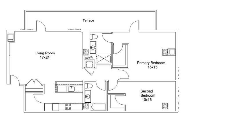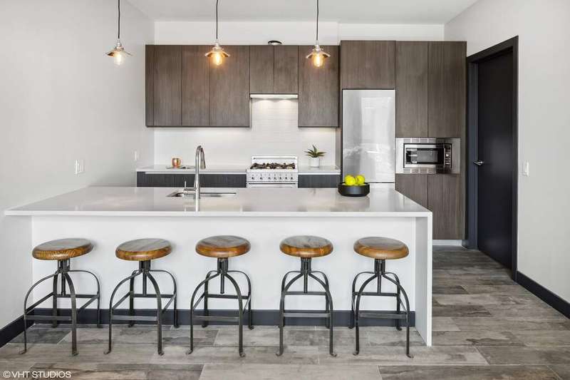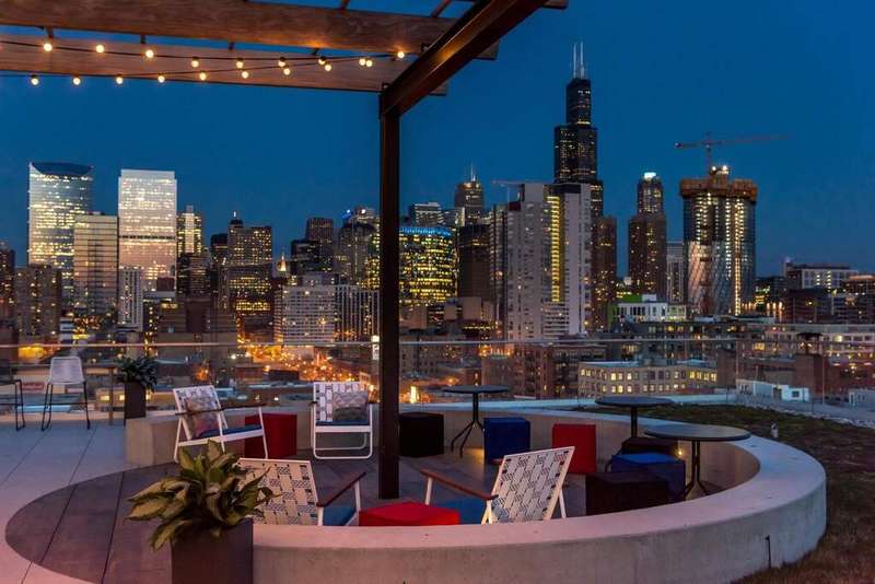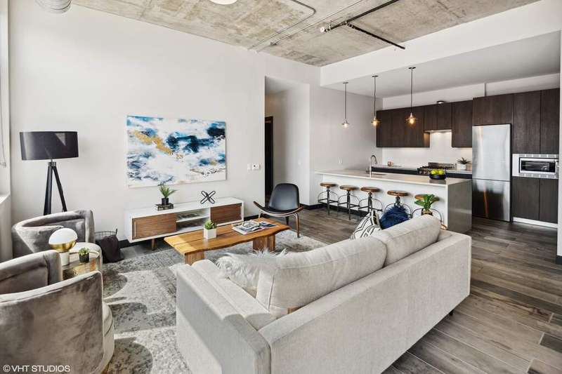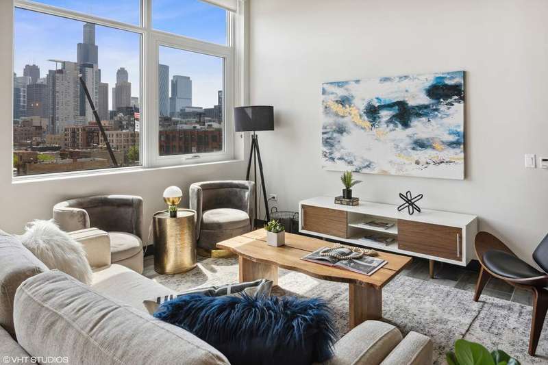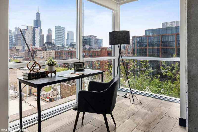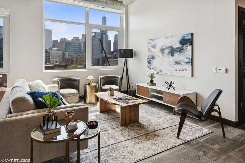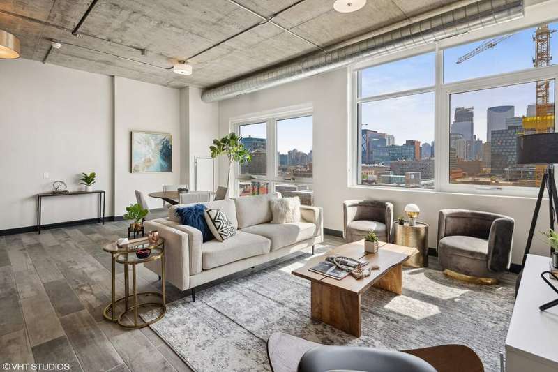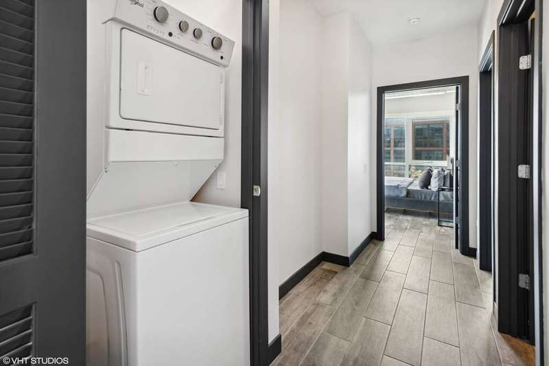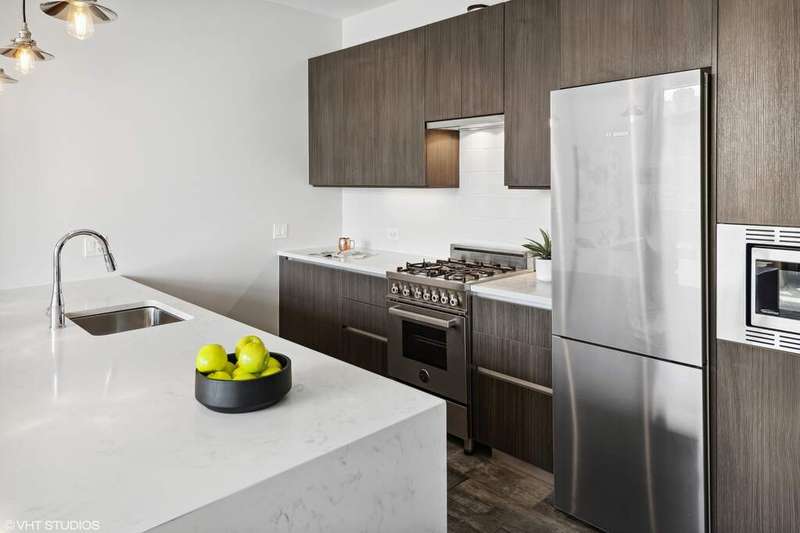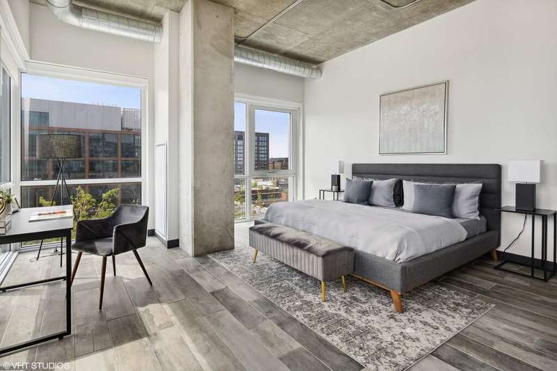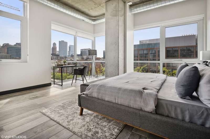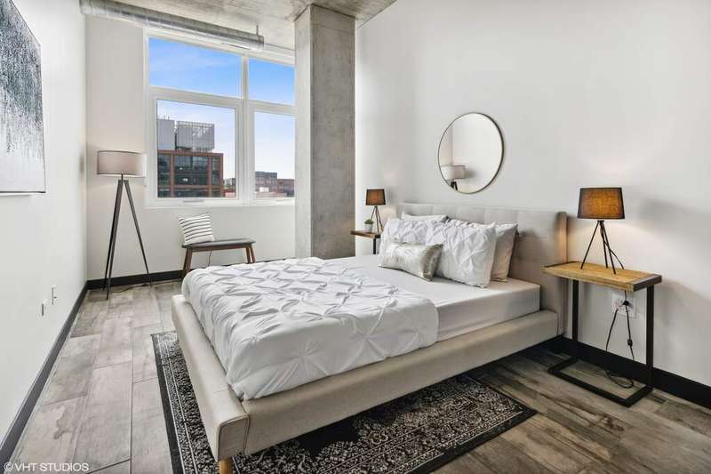 **18 month lease minimum** This two bedroom, two bathroom industrial-chic apartment features an updated eat-in kitchen with Bosch stainless steel appliances & a Bertazzoni range. Showcasing floor to ceiling, wall-to-wall east-facing windows, wake up every morning to stunning city views. In-unit washer/dryer. Enjoy Aberdeen East's amenities that include a rooftop terrace with panoramic views of Chicago, fitness room, bike room & lounge that's perfect for a change of scenery when working from home. Situated in between Chicago's West Loop & Fulton Market neighborhoods, the area is a foodie's utopia with a thriving restaurant district on Randolph Street ("Restaurant Row") & on Fulton Street, offering up everything from casual neighborhood dining to haute cuisine prepared by some of the city's finest restaurants & celebrity chefs. The neighborhood is served by the CTA Green, Pink line trains as well as several bus routes. It also offers convenient access to the Kennedy Expressway. Internet is included. Garage parking available (375/month). *Photos are of a similar unit. Actual unit features white cabinetry throughout and a terrace (see floorplan).