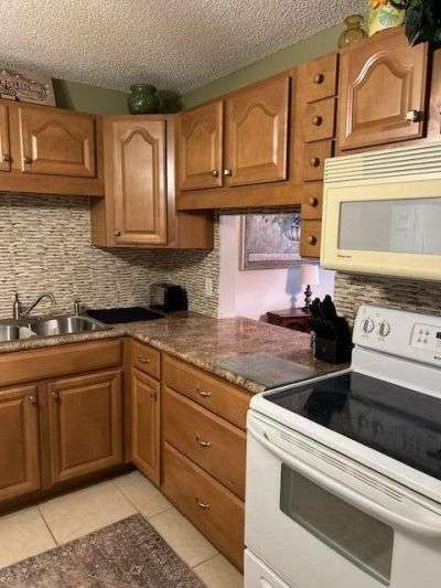 Move in ready, updated condo offered with or without furniture. Kitchen updated. Accordion shutters, tile and laminate flooring, screened patio overlooks lake and satellite pool for Lake Nancy residents. Short walk to the Phase B Clubhouse. Courtesy bus 5 days a week to grocery, shops etc. Full time social director schedules shows, trips and events. Lots included in monthly maintenance: Water, Xfinity cable w/premium channels, Internet, bldg insur, 24/7 guard gated. Great location, convenient to grocery, shops and FL Turnpike. Approx 15 min to downtown WPB, Kravis Center for Performing Arts and so much more. Come Discover Golden Lakes Village.
