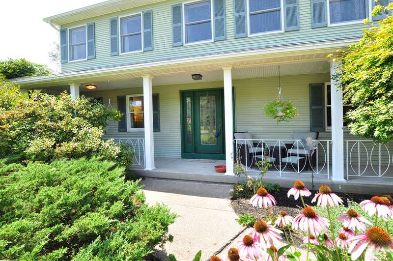4 bedroom colonial with open floor plan that receives plenty of natural light. Refreshed interior with neutral color palette. Bright kitchen w/ breakfast nook, opens to family room with fireplace and mudroom/laundry area. Nice size formal dining room and first floor office/den/retreat space. Upstairs 4 good size bedrooms and full bath are down the hall from the spacious master suite, which includes sitting area, walk-in closet and master bath with whirlpool tub and dual vanities. Great private, level yard with fenced-in inground pool surrounded by a mix of wild flowers and tall grasses for privacy. Natural landscaping throughout, with many edible plantings including strawberries, raspberries, grapes, elderberry, black walnuts, mature maple trees (maple syrup), and your very own pawpaw patch with mature, fruit-bearing trees (currently bearing well over 200 hundred fruit). Enjoy the quiet cul-de-sac from the large back deck or front porch. Location is perfect for riding bikes and walking
