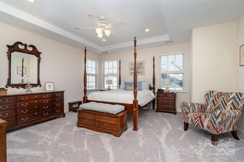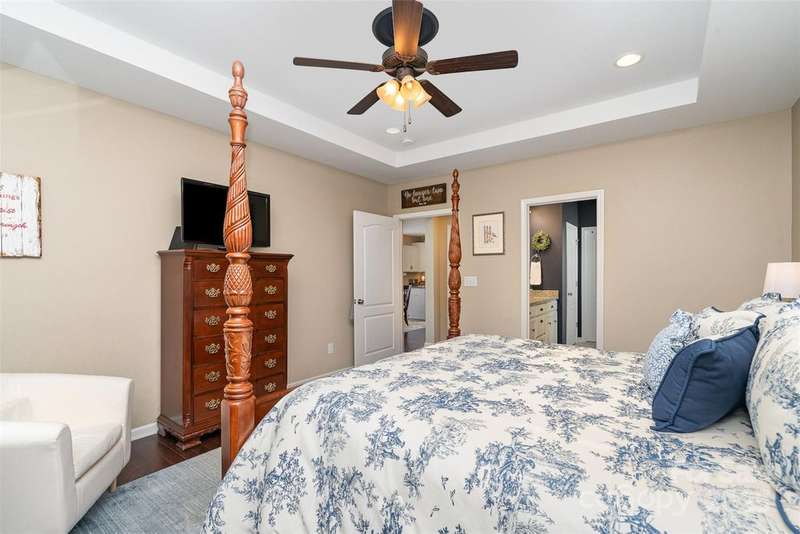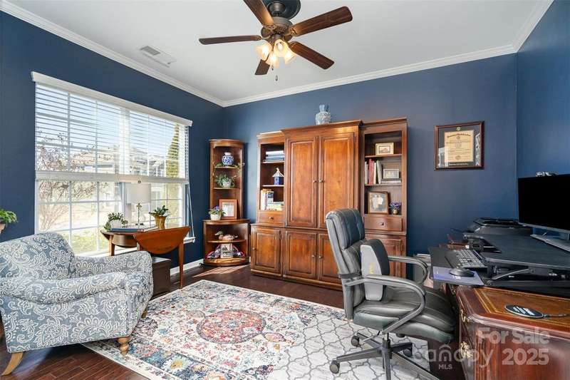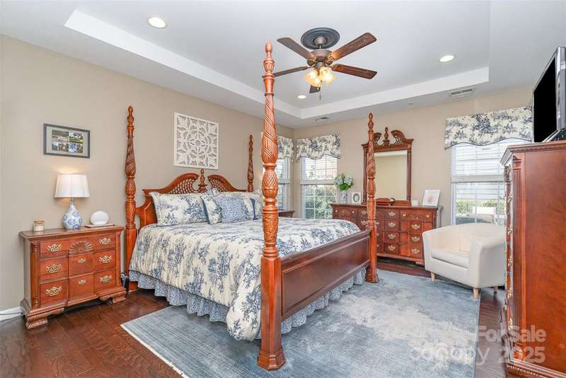 Substantial price cut! Seller will pay $5,000 toward buyer closing costs w/acceptable offer. Welcome to this pristine 5-bedroom home which includes 2 owner suites, perfect for privacy & comfort. Upon entry, you'll find an office with French doors which could be a formal dining room, wood floors, & crown molding. The chef's kitchen features white cabinetry, granite countertops, an island,gas range, & stainless steel appliances. The cozy family room with a FP opens to the kitchen, breakfast bar & dining area. The 1rst-floor owner's suite has wood floors, tray ceilings, spa shower, granite vanity, dual sinks, & a custom walk-in closet. The main floor also includes a powder room & laundry. Upstairs offers a large loft, 4 BRS, & a 2nd owner's suite with a walk-in closet, dual sinks, granite vanity, tile shower, garden tub, & tile floors. The oversized 2-car garage & fenced backyard add to its appeal. Walk to the pool, fire pit, & playground. Great schools & near shopping and I-77 make this home a must-see!