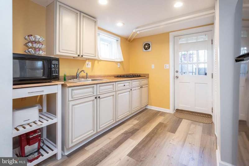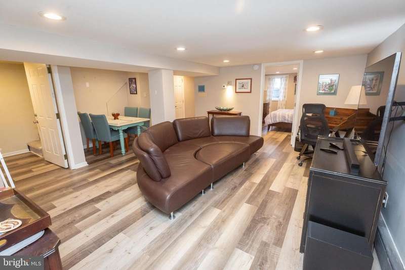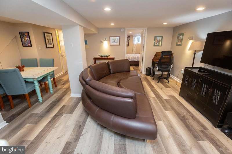 The licensed lower-level apartment includes approximately 830 square feet of living space and has a private ground-level front entry. It features one bedroom with a large, code-compliant egress window, a full bathroom, living room, dining space, and a galley kitchen equipped with a refrigerator, cooktop, and coffee station. The unit was fully updated in 2021 and has a programmable Navien combi system providing self-controlled heating and A/C. This space has a proven short-term rental history. The property holds a Basic Business License for rental use and a valid Short-Term Rental License.