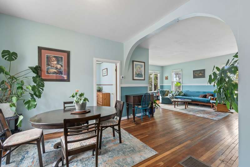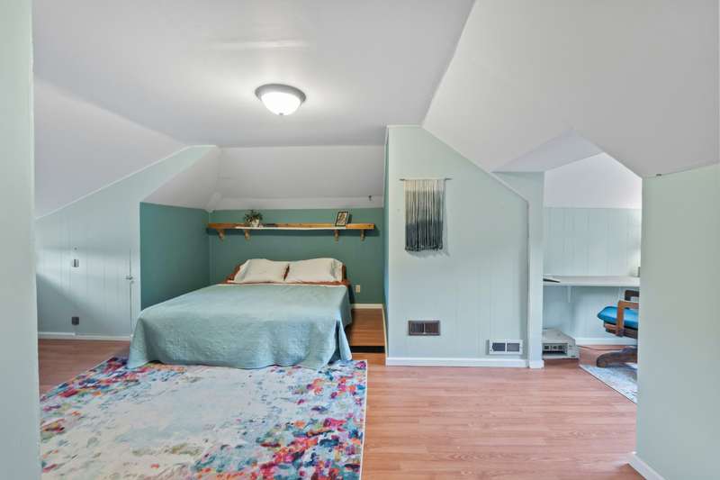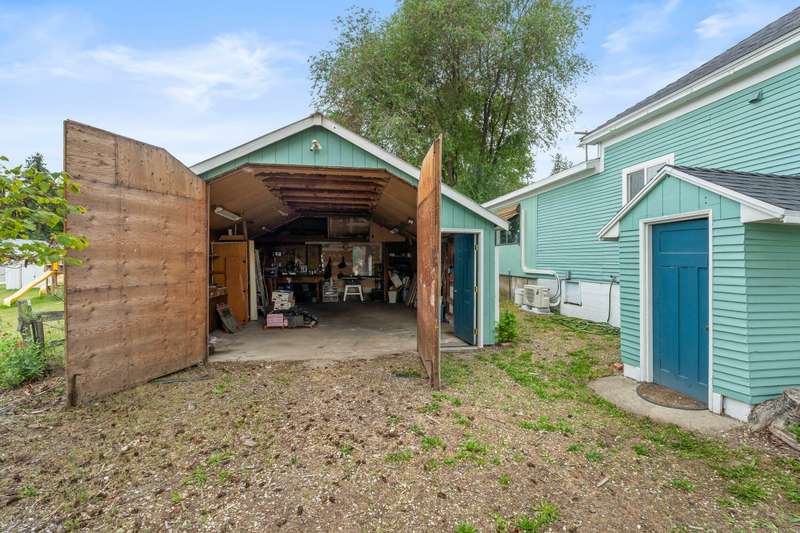 Charming 1940s Home with modern updates. Beautifully maintained 1.5 story home with a walkout basement, stunning hardwood floors, spacious family/game room & updated bathroom. Comfort is a priority with a new heat pump, ensuring energy-efficient temperature control year-round. The updated bathroom & plumbing add a fresh touch, bringing both style & peace of mind to daily routines. Enjoy the outdoors with a large, enclosed patio, perfect for relaxing with your morning coffee or entertaining guests. The newly fenced & landscaped yard creates a private & inviting atmosphere, while the dedicated garden space offers raspberries, strawberries, rhubarb, & plum tree. The detached garage with additional storage ensures you have all the space you need for hobbies, tools and seasonal essentials.