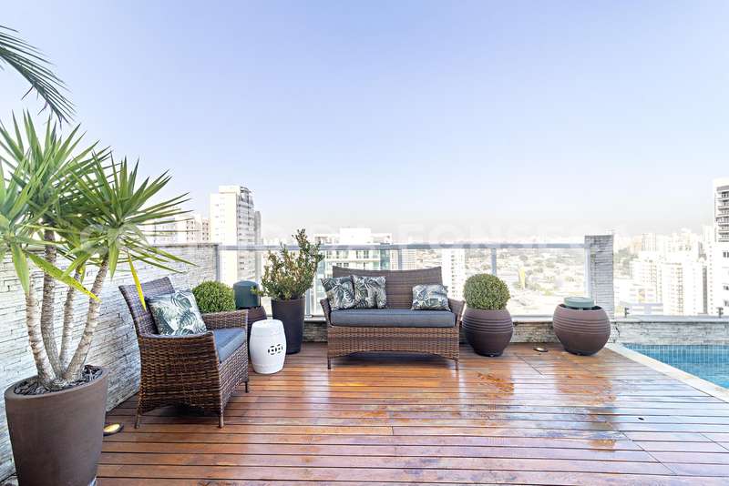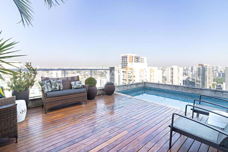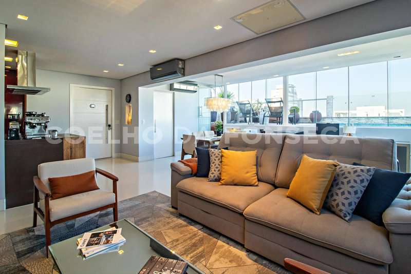 Penthouse totalmente reformada (incluindo hidráulica e elétrica). Esse é daqueles apartamentos onde você controla tudo ao alcance de um dedo. A cobertura é toda automatizada, incluindo persianas, luz, som e ar condicionado. A planta original com três dormitórios foi adaptada para um apartamento totalmente aberto e integrado com a área externa. O resultado é uma suíte maravilhosa com closet imenso.