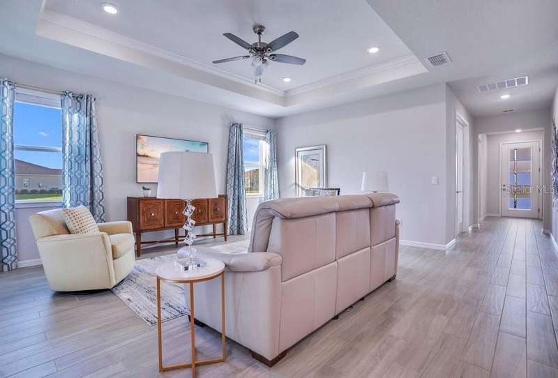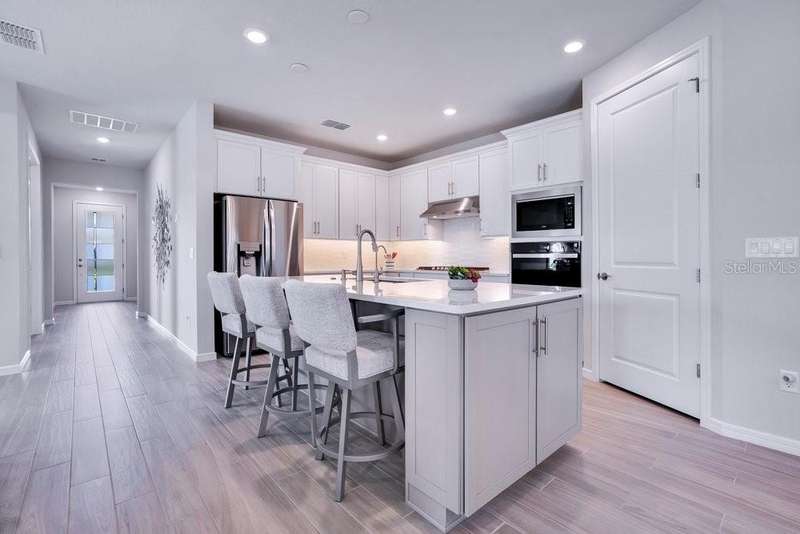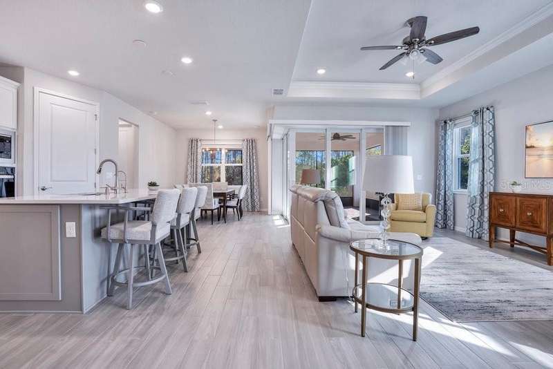 0.5 mi to Sunbridge Basecamp • ˜5 mi to Lake Nona Town Center • Conservation/greenspace view • 3D walkthrough included Del Webb Sunbridge 55+ Mystique model (2024) on a conservation lot delivers single-level living with 3 bedrooms, 2 baths, a FLEX/OFFICE, and an oversized 2-car garage with epoxy floor and storage. 2,056 sq ft open-concept plan links the kitchen, dining and great room to infinity-style sliders that open to a large SCREENED ENCLOSURE facing trees/greenspace—providing space for outdoor dining and low-maintenance living. Kitchen highlights include a large island, solid-surface counters, walk-in pantry, GAS cooktop, stainless steel appliances. Private primary suite features an en-suite bath and walk-in closet; three additional bedrooms share a full bath. Notable features & systems: WATER PURIFICATION system, conservation-view site, epoxy-coated garage floor; fiber network available; HOA includes exterior/yard maintenance (per community). Hammock Club amenities (~27,000 sq. ft.): zero-entry resort pool with lap lanes, resistance pool & spa, pickleball/tennis, movement studio & fitness center, tavern & grille, arts/crafts rooms, fire pits, walking trails, and full-time Lifestyle Director. Nearby anchors: Lake Nona Medical City & USTA National Campus (~5-mi area), Boxi Park, and Split Oak Forest WEA trail access. Includes 3D tour; ask about video link if available. Convenient access to 417/528 and Florida’s Turnpike via Narcoossee Rd; Orlando International Airport and Brightline Orlando Station ~20-minute area (buyer to verify). All facts deemed reliable but not guaranteed; buyer to verify room dimensions, HOA fees, inclusions and availability of services.**Ask about a lender provided RATE BUY-DOWN CREDIT on this home!*