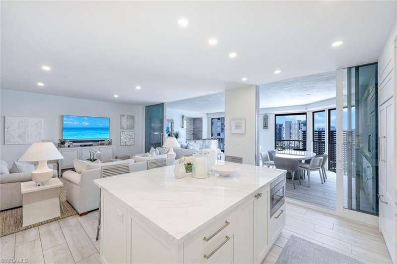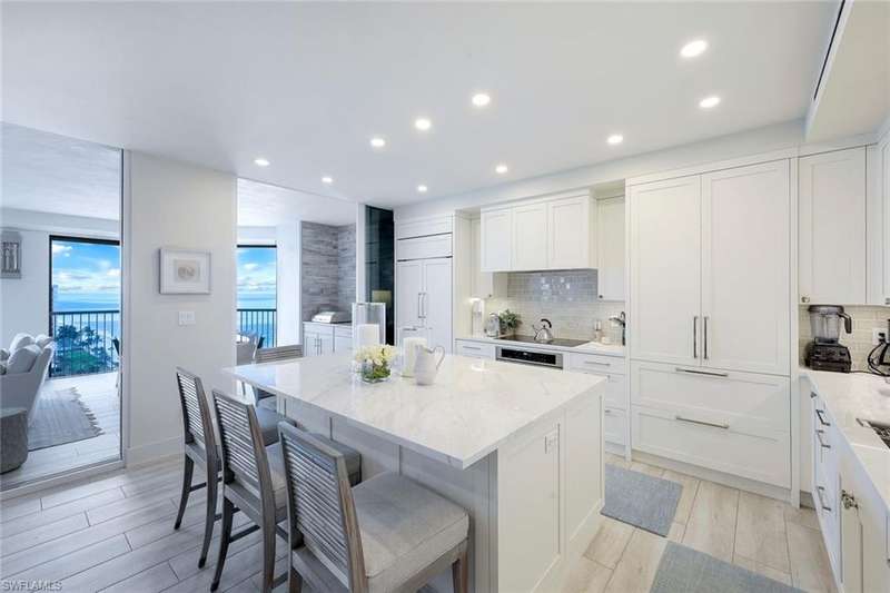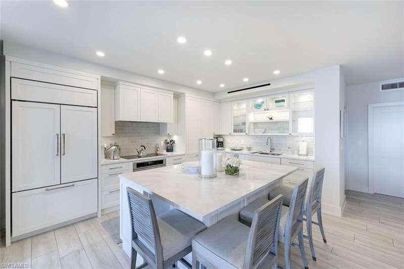 La Mer - Penthouse 105 offers you the unrivaled combination of location, views and ultra luxury living. Every detail of this residence has been thoroughly thought through providing you and your guests with the ultimate Naples beachfront vacation experience. Admire the custom cabinetry, quartz countertops, stainless appliances, oversized island, high-end finishes and fixtures with the perfect coastal contemporary furnishings to match. Large sliding glass doors leading out to your lanai allow for the perfect blend of indoor/outdoor living. Enjoy your electric grill and a cold beverage while overlooking the Gulf of Mexico and the perfectly manicured Park Shore landscaping. The building offers a spectacular community pool, fitness center, community room & grills. La Mer is the closest building to the Gulf of Mexico in all of Park Shore ensuring you are just steps to the white sandy beaches at all times. Conveniently located directly across the street from Venetian Village allowing you to e