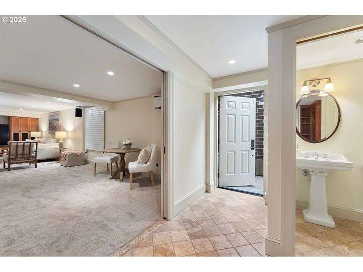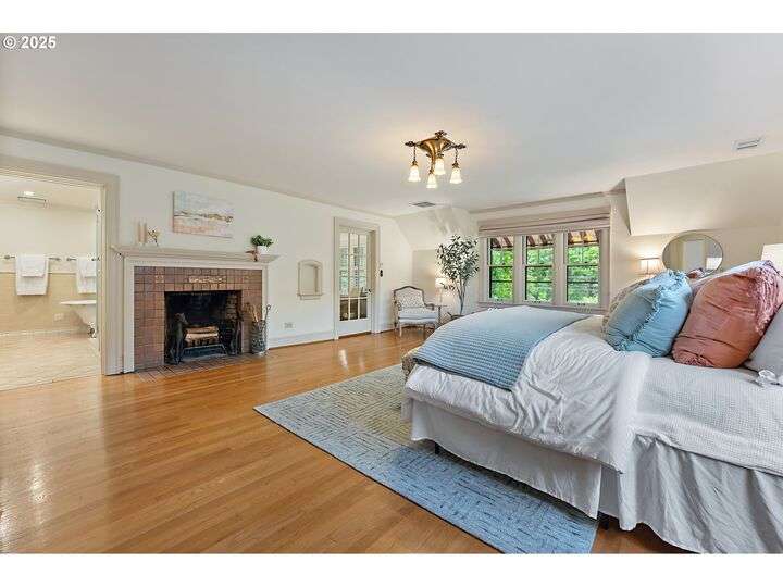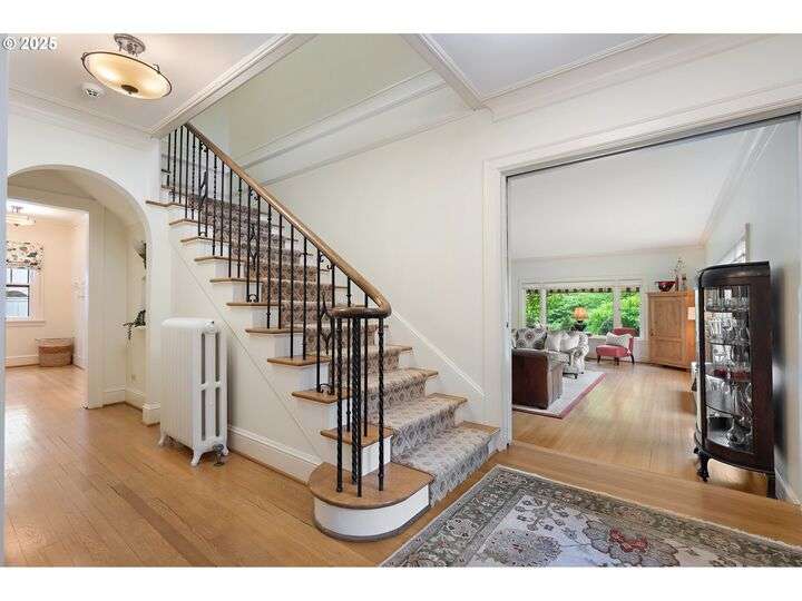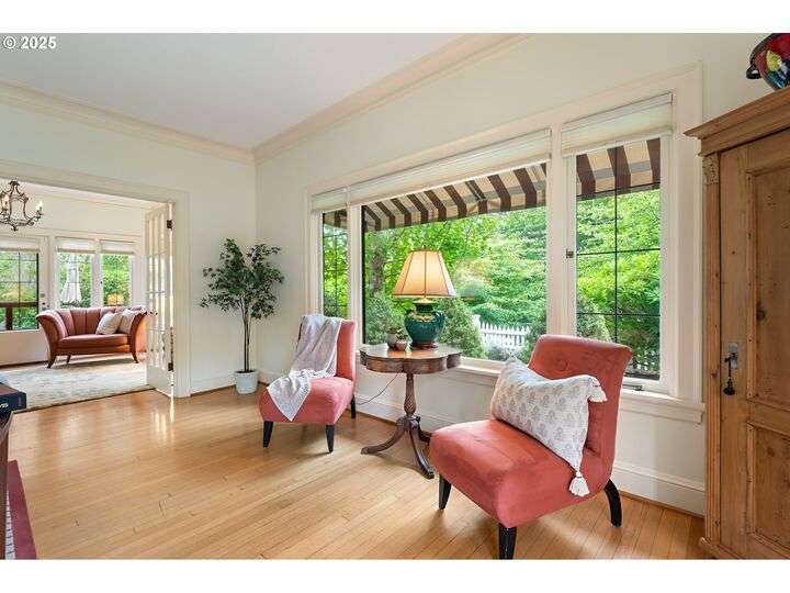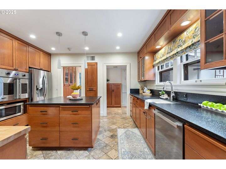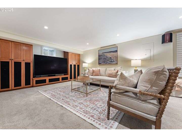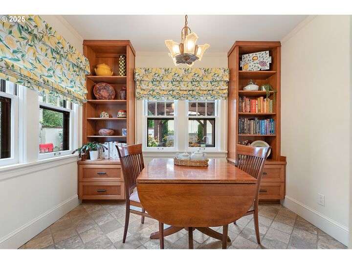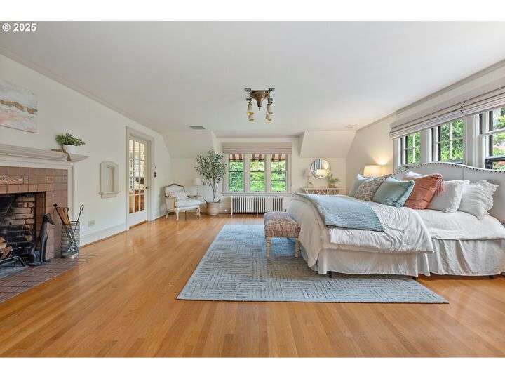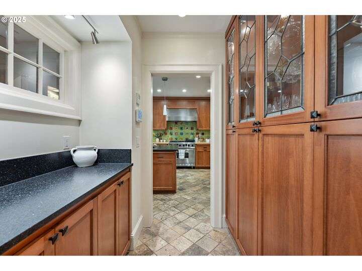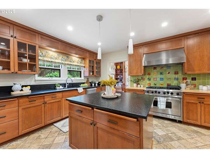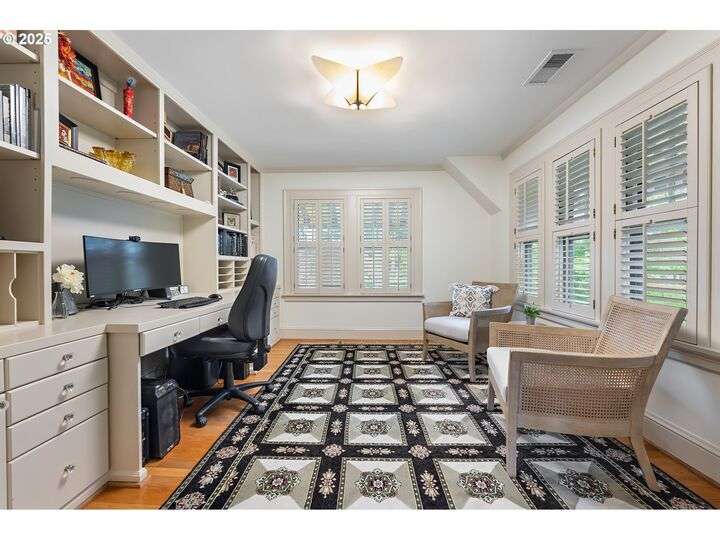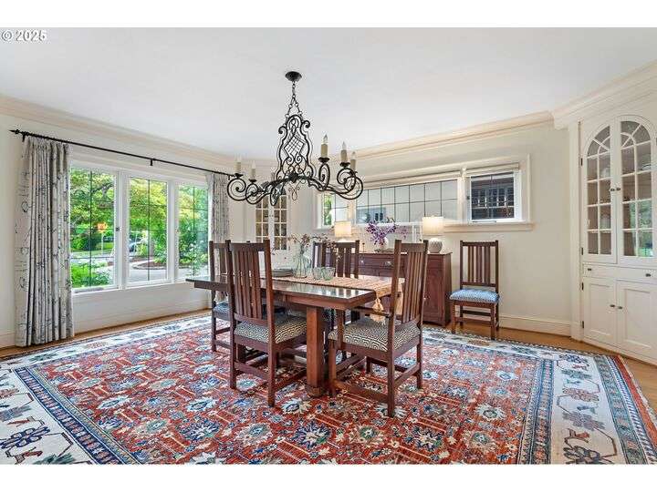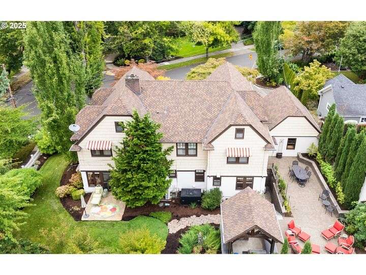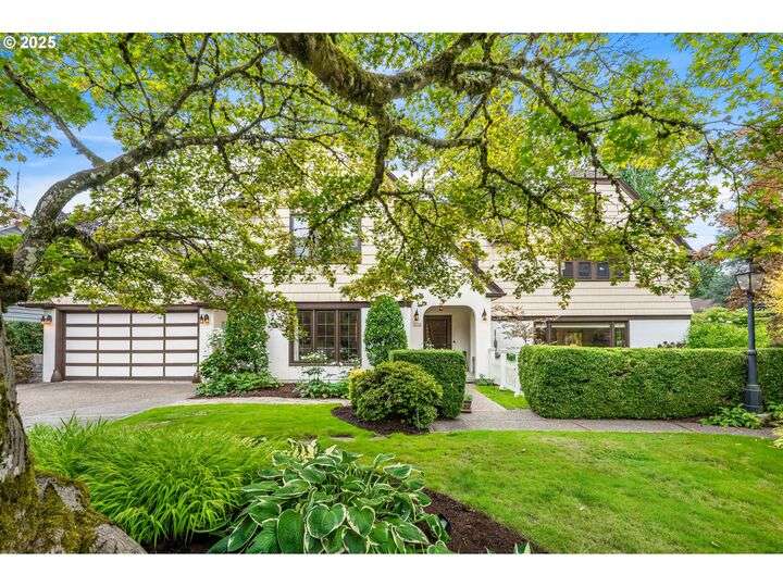 This glorious Eastmoreland classic welcomes you with warmth and grace, perfectly balanced between elegant style and everyday comfort. An entertainer's dream, the main level invites you to gather in beautifully proportioned formal rooms, while the custom chef's kitchen and breakfast room with extensive counter space, central island, butler's pantry, sleek appliances, and ample cabinetry await your culinary adventures. A light-flooded den, an office with built-ins, and a half bath round out the main level. Upstairs, relax into the expansive primary suite, which includes an 18 x 20 bedroom with wood-burning fireplace; luxury bath with walk-in shower and soaking tub; double walk-in closets; and a 12 x 11 office with extensive built-ins. Family and guests will appreciate the three additional spacious bedrooms and beautifully remodeled full bath. Elevate movie or game night in the lower level with its custom-built media center, storage cabinetry, and wet bar--it even has an exterior entrance and potential as separate living quarters. Enjoy sunny days on the oversized lot, complete with lush mature landscaping, flat yard space, a custom outdoor grill pavilion, and extensive patio seating--don't miss the gorgeous mosaic outside the den, a spot of year-round joyful color. Meticulously maintained and upgraded with a Presidential roof, zonal cooling, on-demand hot water, and more; glowing with exquisite vintage features including hardwood floors on main and upper levels; and period light fixtures, built-ins, and hardware. Conveniently located near amenities including the Eastmoreland Golf Course, Crystal Springs Rhododendron Garden, Springwater Trail, Reed College, MAX Orange Line shopping/dining on SE Woodstock and in Sellwood/Moreland --this is the home you've been waiting for in Southeast Portland's premier destination neighborhood. [Home Energy Score = 1. HES Report at https://rpt.greenbuildingregistry.com/hes/OR10241874]