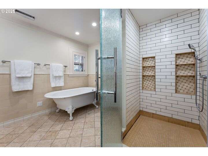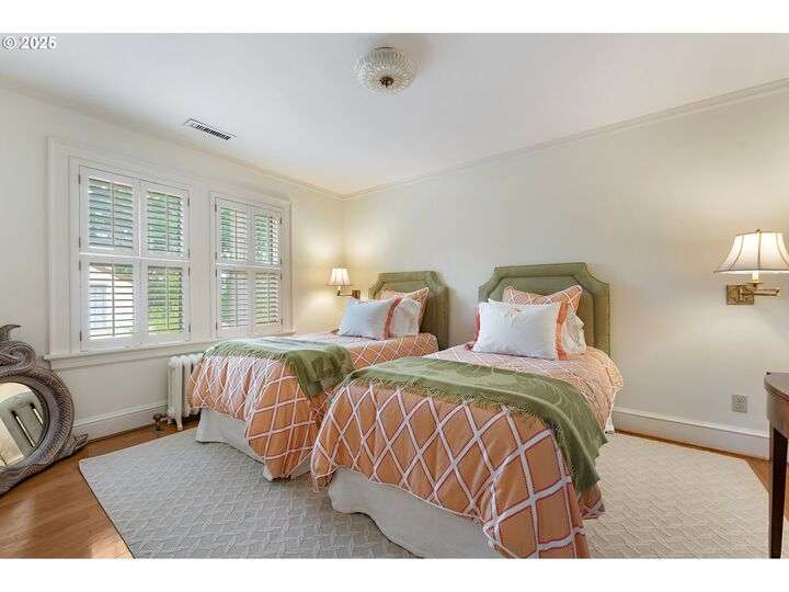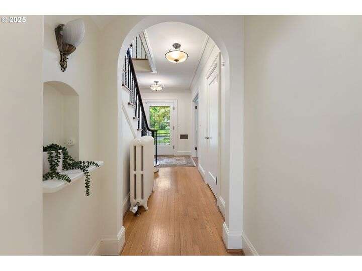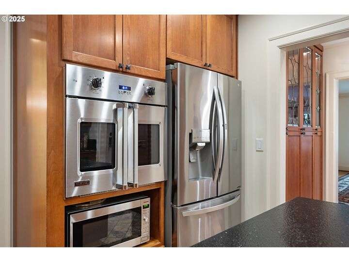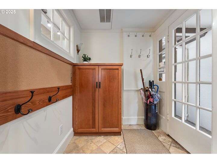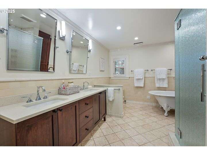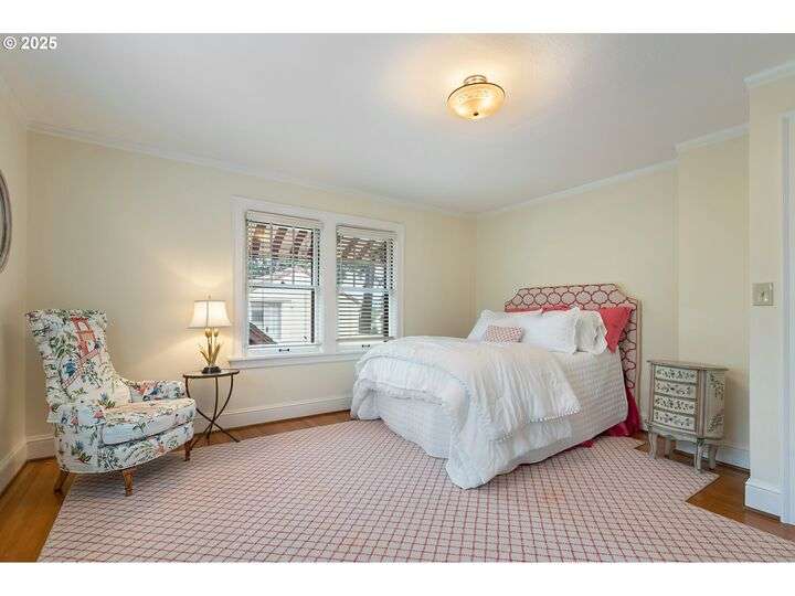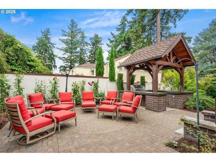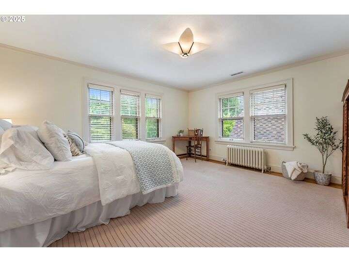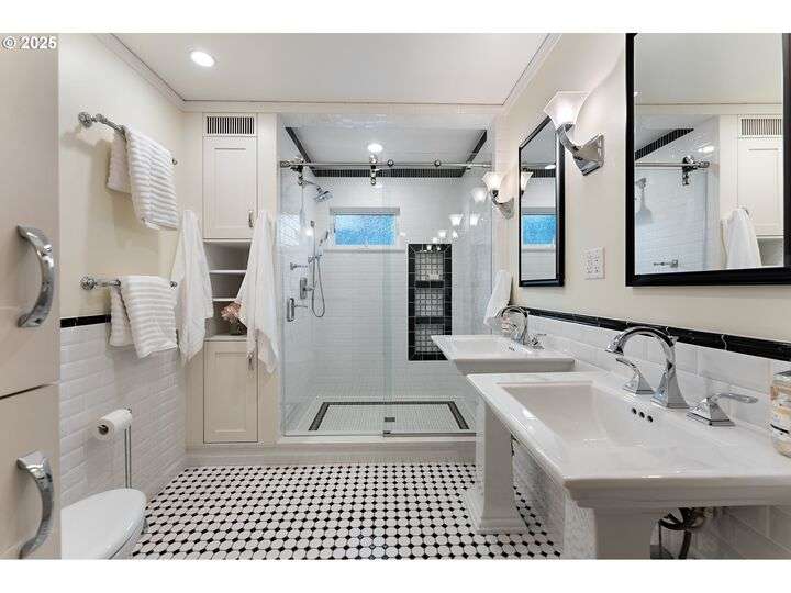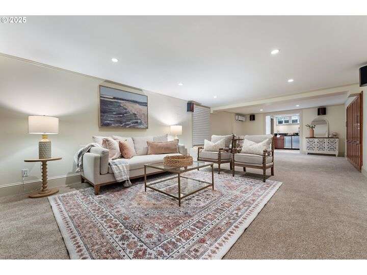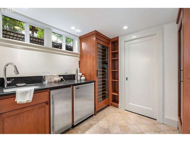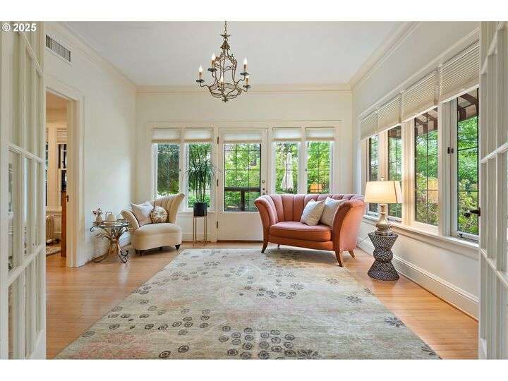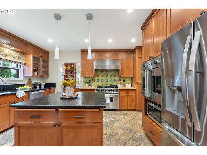 This glorious Eastmoreland classic welcomes you with warmth and grace, perfectly balanced between elegant style and everyday comfort. An entertainer's dream, the main level invites you to gather in beautifully proportioned formal rooms, while the custom chef's kitchen and breakfast room with extensive counter space, central island, butler's pantry, sleek appliances, and ample cabinetry await your culinary adventures. A light-flooded den, an office with built-ins, and a half bath round out the main level. Upstairs, relax into the expansive primary suite, which includes an 18 x 20 bedroom with wood-burning fireplace; luxury bath with walk-in shower and soaking tub; double walk-in closets; and a 12 x 11 office with extensive built-ins. Family and guests will appreciate the three additional spacious bedrooms and beautifully remodeled full bath. Elevate movie or game night in the lower level with its custom-built media center, storage cabinetry, and wet bar--it even has an exterior entrance and potential as separate living quarters. Enjoy sunny days on the oversized lot, complete with lush mature landscaping, flat yard space, a custom outdoor grill pavilion, and extensive patio seating--don't miss the gorgeous mosaic outside the den, a spot of year-round joyful color. Meticulously maintained and upgraded with a Presidential roof, zonal cooling, on-demand hot water, and more; glowing with exquisite vintage features including hardwood floors on main and upper levels; and period light fixtures, built-ins, and hardware. Conveniently located near amenities including the Eastmoreland Golf Course, Crystal Springs Rhododendron Garden, Springwater Trail, Reed College, MAX Orange Line shopping/dining on SE Woodstock and in Sellwood/Moreland --this is the home you've been waiting for in Southeast Portland's premier destination neighborhood. [Home Energy Score = 1. HES Report at https://rpt.greenbuildingregistry.com/hes/OR10241874]