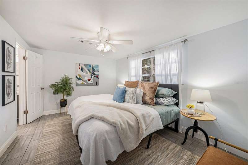 Under contract-accepting backup offers. Welcome to this charming home with NO HOA AND NO FLOOD ZONE! Enjoy a location just steps from Lake Magdalene for your daily stroll! This 3-bedroom, 2-bath home sits on a private cul-de-sac and is thoughtfully designed for style, comfort, and everyday conveniences. The spacious ensuite primary bedroom features an oversized closet, while the updated kitchen shines with granite counters, an entertainment island bar, and custom built-in cabinetry. A generous eat-in area makes gathering with family and friends effortless. With an OPEN FLOOR PLAN, SCREENED LANAI AND PRIVATE POOL with NEW PUMP (2025), PRIVATE WELL, NEARLY NEW ROOF (2018), new A/C (2021), NEW W/H (2023) and an AIR CONDITIONED GARAGE, this is the home you've been waiting for! Step outside to your private backyard oasis, complete with a sparkling screened pool and lanai—perfect for relaxing or entertaining year-round. Additional highlights include ceramic wood-look flooring, an EV CHARGER, FENCED yard, and lush mature landscaping. Appliances’ ages range from 2018-2025, with NEW REFRIGERATOR, WASHER, AND ICE MAKER (2025). With a prime location on .30/acre lot, this home offers quick access to downtown Tampa, hospitals, restaurants, malls, interstates, sports, and entertainment venues and beaches, and is the ideal fit for first-time buyers, downsizers, or investors seeking rental potential. Schedule your private showing today!