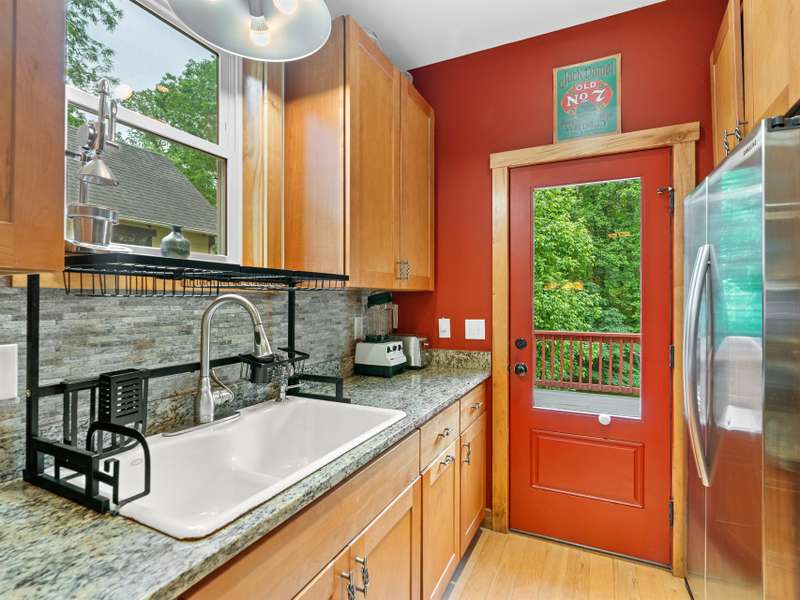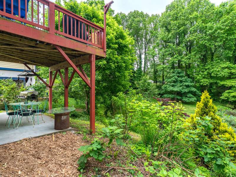 Perched above the River Arts District, walking distance to all the top spots of East/West Asheville.This special property offers convenience, charm, efficiency & income potential. Terrace level is separately metered with it's own entry. Successfully operated as a legal "homestay"(records/permit available). Step inside from the charming rocking chair front porch to admire the tongue & groove vaulted ceilings and hickory floors. Main level chef's kitchen boasts 42" maple soft-close/dovetail joint cabinets, granite counters + stainless steel appliances. Spacious deck just off main kitchen is perfect for grilling and entertaining. Main level features 2 comfortable bedrooms and a dreamy loft with Jefferson stair. Terrace level you'll find 2 more spacious bedrooms, a full bath, living/dining area, & kitchenette + its own private patio. Live upstairs and rent downstairs, or keep the whole property for yourself and enjoy your 4 BR oasis in the heart of East/West AVL.