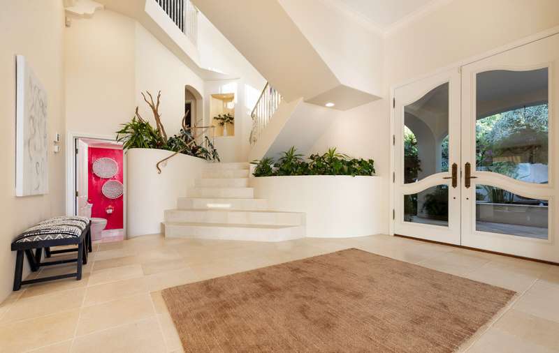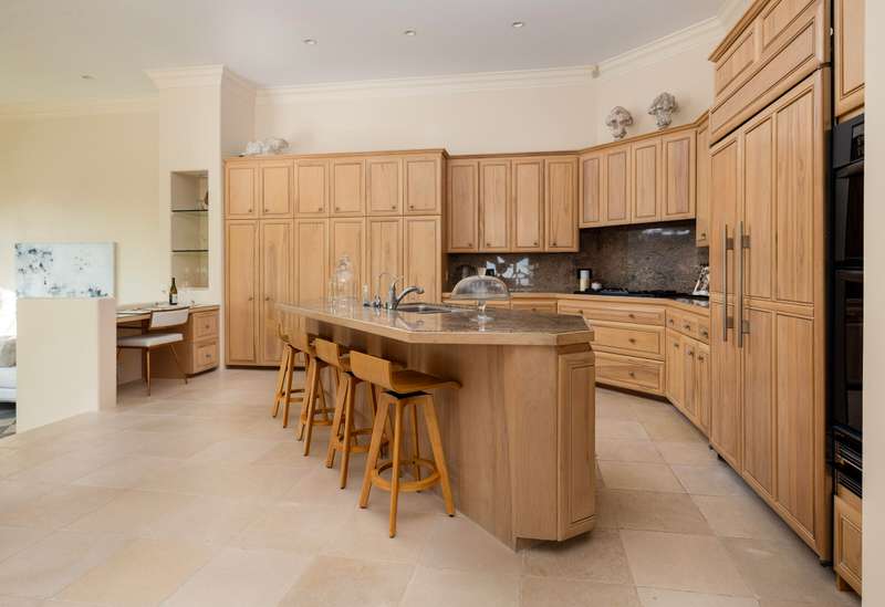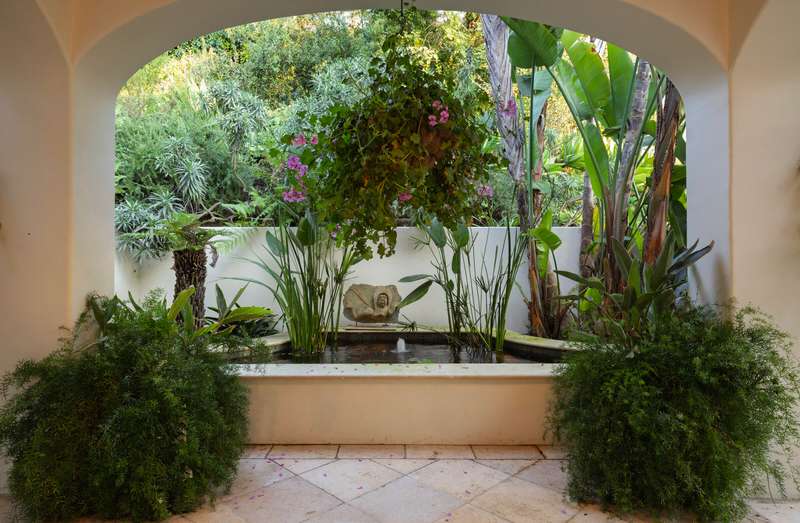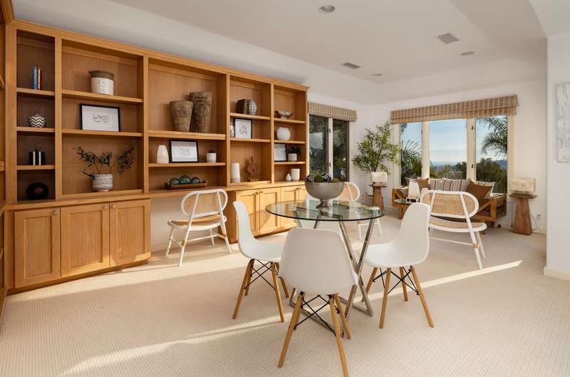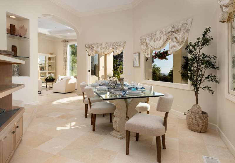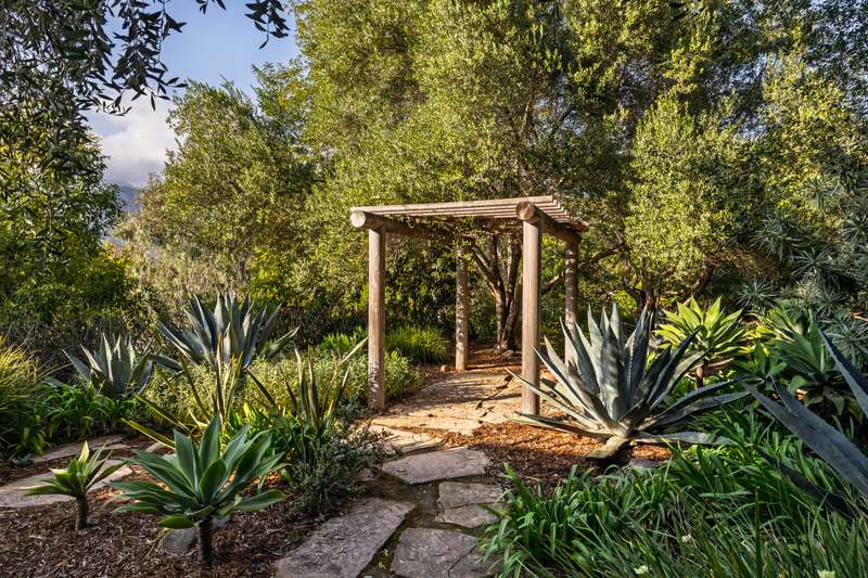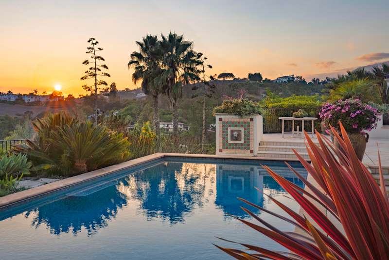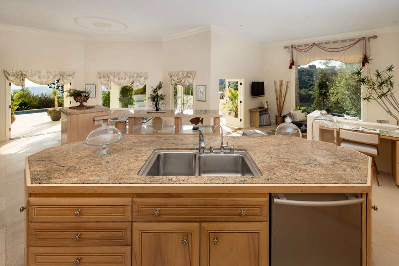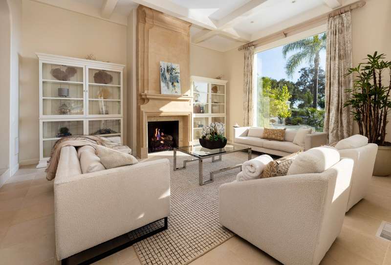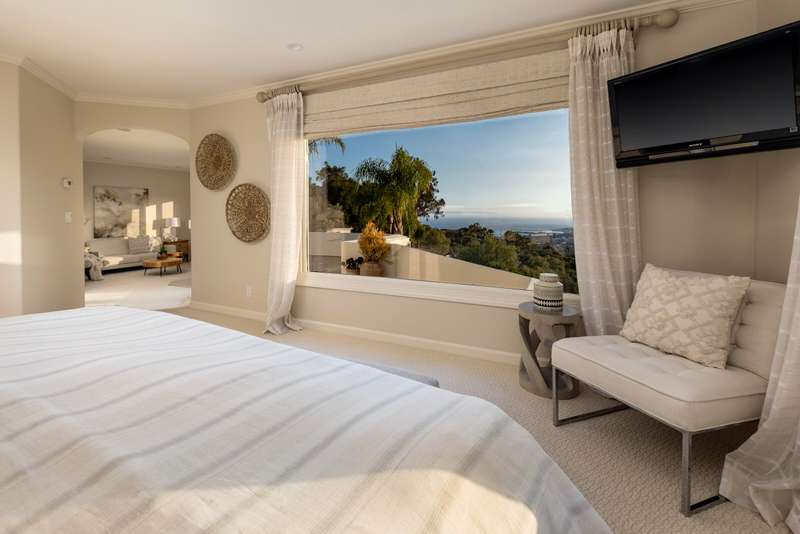 Behind private gates on Calle Elegante, a world of serenity and beauty unfolds on 1.7 lush acres. The moment you step inside, walls of glass reveal sweeping views of the ocean, islands, harbor, and mountains--reminders that this is no ordinary home, but a sanctuary elevated by nature itself. The story begins in the heart of the house, where soaring ceilings, stone floors, and a fireplace anchor the formal living room. Light pours in, filling the space with warmth, while the dining and family rooms blend seamlessly with the kitchen, creating an open, effortless flow for gatherings both large and small. Upstairs, the primary suite continues the story of retreat and renewal. With its own sitting room, private fireplace, and adjoining office, it's a place to wake slowly to the sunrise or wind down as the evening light paints the horizon. Two additional en-suite bedrooms carry the story further: one with doors that open directly to a secret garden hideaway, and the other framing the drama of the mountains. Step outside, and the home transforms into a private resort carved into the hillside. Inspired by the love of the Bacara Resort, the current owner designed the pool terrace to rival the luxury of a five-star retreat without ever leaving home. A sparkling pool shimmers in the sunlight, anchored by a covered patio with outdoor fireplace, a fully equipped outdoor kitchen, and multiple lounge areas. Here, mornings begin with quiet coffee overlooking the coastline, and evenings end with golden sunsets shared among friends. For visitors, a private guest suite above the garage offers decks, views, and independence a retreat within a retreat. Surrounding it all are lovely gardens, a koi pond, and mature trees that have grown into characters of their own, wrapping the home in shade, color, and year-round beauty.