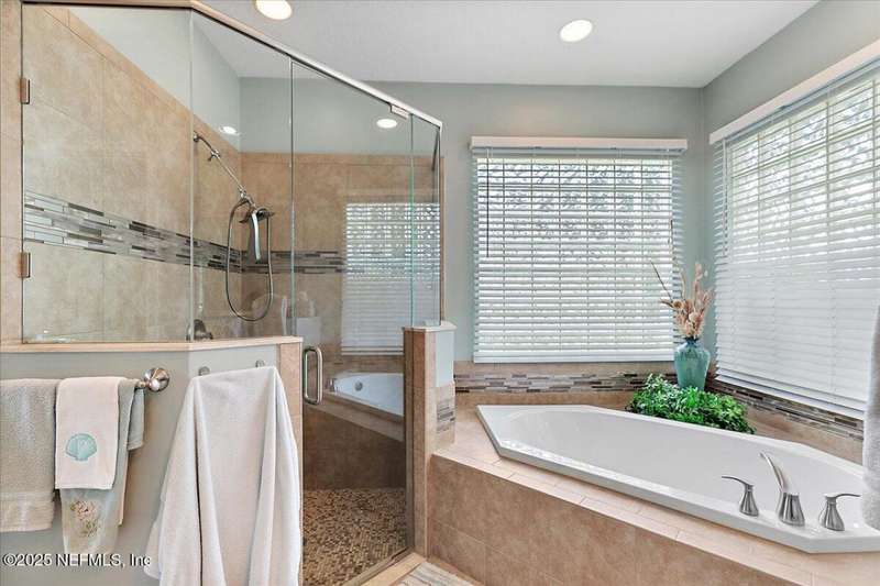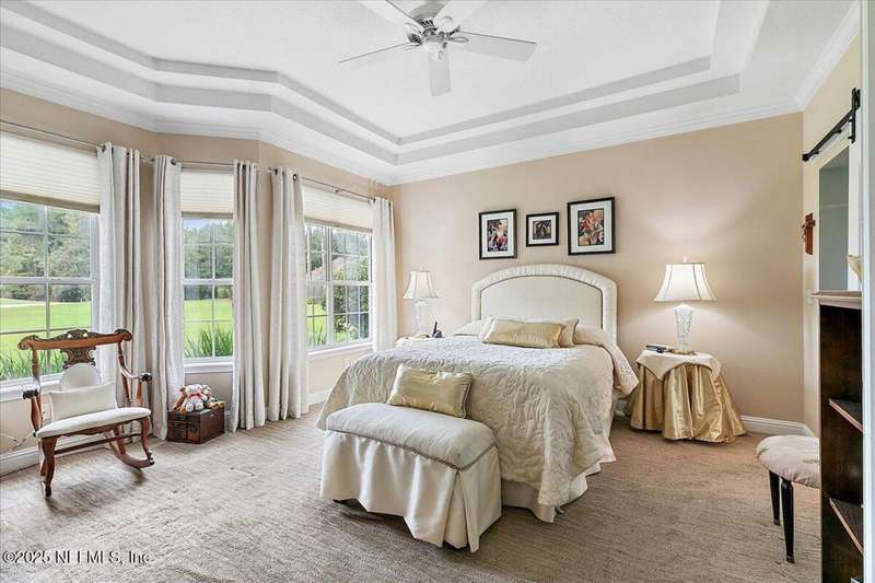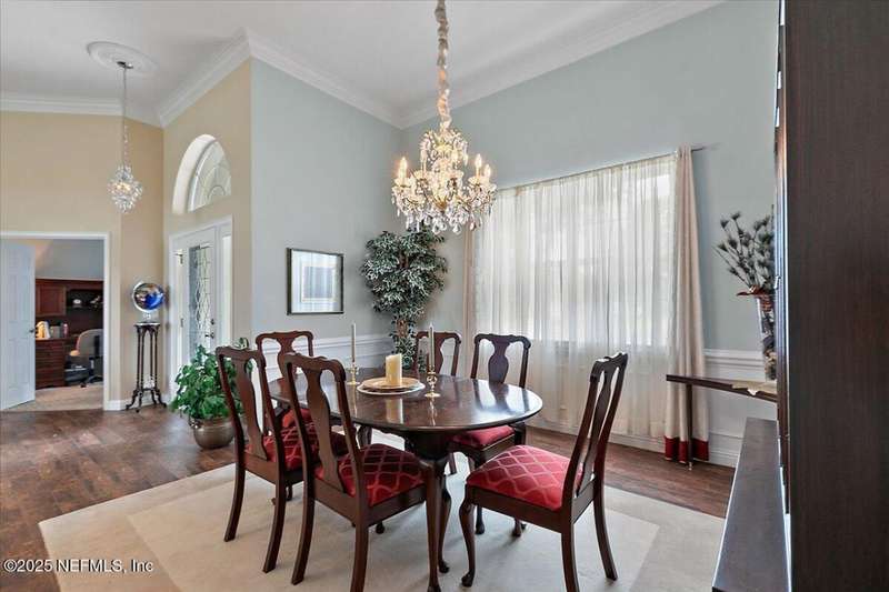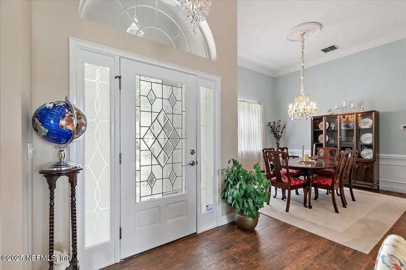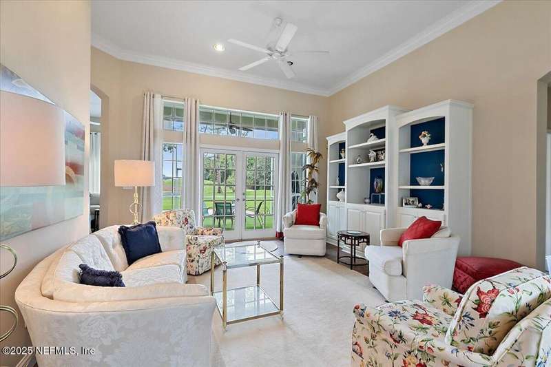 Stunning 4/ 2.5 golf course home in Deercreek Country Club! Architectural details including high ceilings, crown molding, leaded glass entry, and paver driveway highlight this gracious home. Screened Lanai provides a personal retreat for reading your favorite book. Large patio is the perfect place for cookouts with family & friends. Huge lot situated behind the 7th green is large enough to add a pool. Dream Kitchen is open to Breakfast Nook & Family Room. Spacious living continues with the Dining Room and the Living Room, especially with French doors leading to the Lanai. Primary Bedroom & Bath with sitting area, glass enclosed shower, tub, 2 walk-in closets, double sinks and vanities. 4th Bedroom/Office with Bay window near Foyer. Other Bedrooms in split floorplan share a Jack & Jill Bath. No CDD fees in Deercreek Country Club, one of the best gated communities in Jacksonville with its great location. Optional fee-based membership available for Deercreek Country Club amenities.