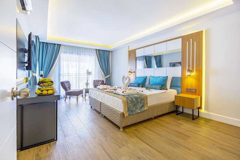 The hotel concept complex is built on a total area of 6,143 m² and offers a wide range of social amenities: a private beach, separate swimming pools for men and women, a shared pool, children’s pool, kids’ play area, aquaparks in all pools, accessible shared restrooms, jacuzzi, sauna, spa, massage rooms, hair salon, rooftop restaurant, reception services, conference room, laundry rooms, emergency health office, snack and pool bar, spa bar, and rooftop bar. All facilities are offered with separate areas for men and women as well as shared-use areas, delivering high-quality service. Access to the private beach is provided by golf carts.
