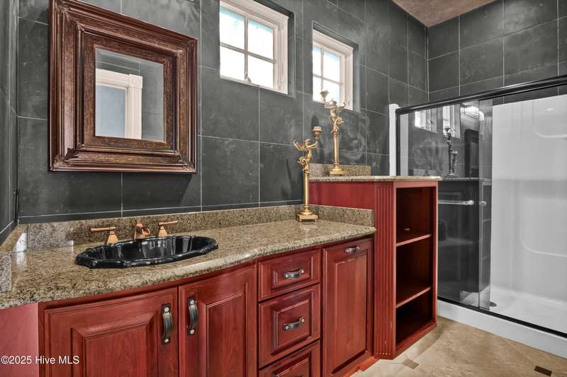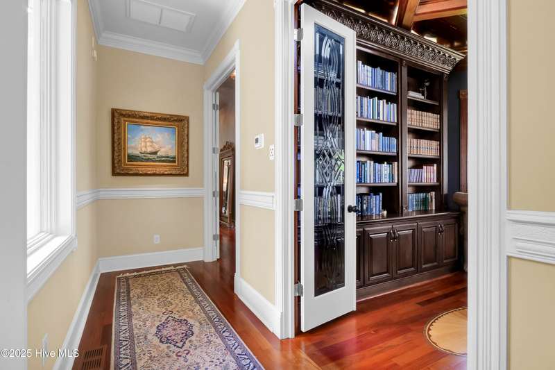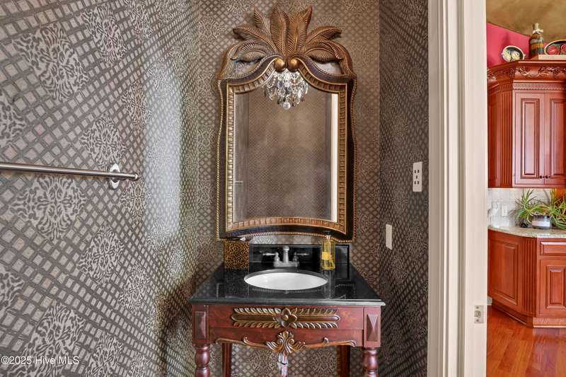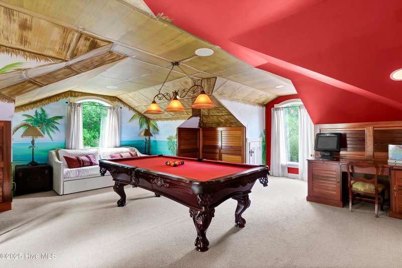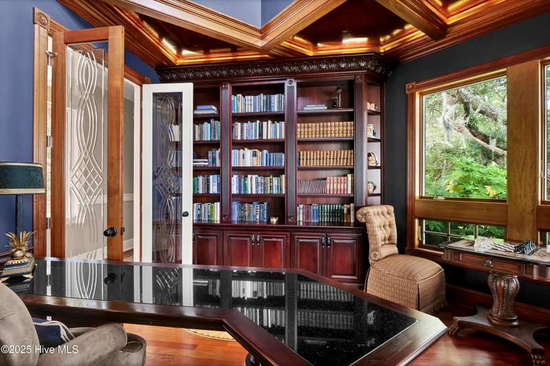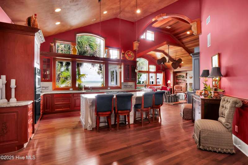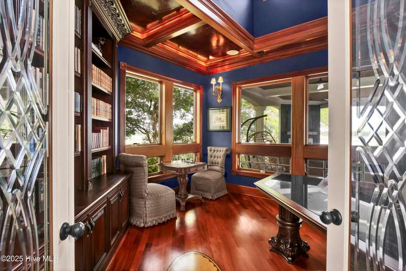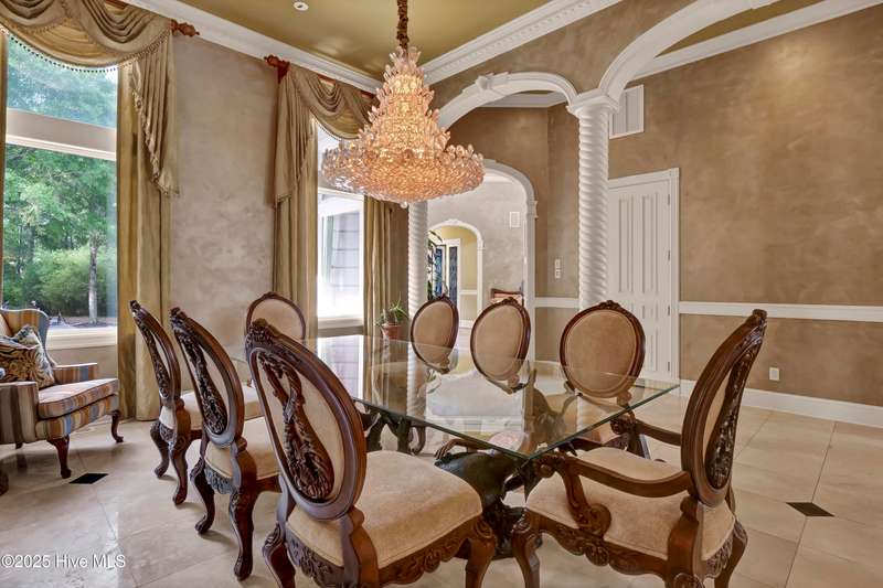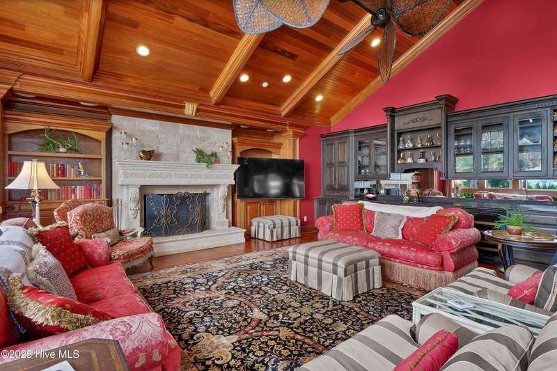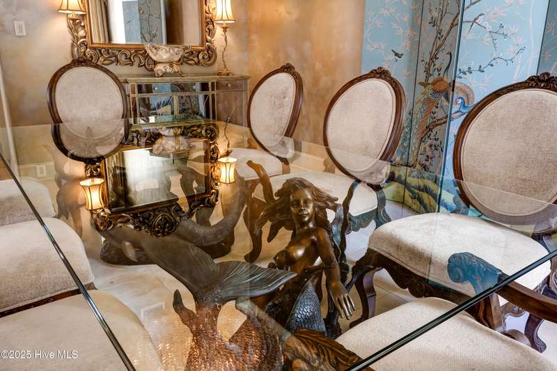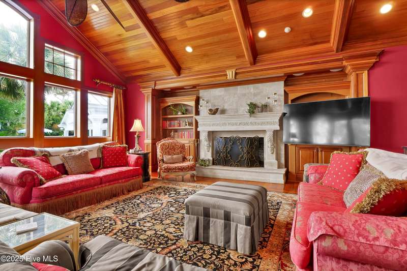 Poised on a high bluff above the Shallotte River with sweeping views to the Intracoastal Waterway and vibrant sunset skies, this exceptional 2.67-acre estate offers privacy, resort-style living, and direct water access. With over 320 feet of water frontage, a private dock, and access to a neighborhood boat ramp, it's the ideal retreat for those who value space, serenity, and a true boating lifestyle.Tucked behind three gated entrances with a fully fenced perimeter, the property features mature & manicured grounds, a koi pond, putting green, and a circular drive leading to an oversized three-car garage. A 65kW whole-house generator ensures comfort year-round.Inside, the home is finished with Brazilian cherry hardwoods, marble tile, and impact-rated Andersen doors and windows. The grand foyer boasts a domed cathedral ceiling hand-painted with cherubs and a crystal chandelier. Nearly every room captures river or pool views.The formal dining room showcases Italian-inspired details, while the chef's kitchen features handcrafted cabinetry, premium appliances, and a bright breakfast nook. The living room includes a fireplace, built-ins, and wet barperfect for entertaining. The split floor plan includes a private primary suite, two guest ensuites, and a large upstairs bonus room with full bath.Outdoor amenities include a resort-style pool, pool house with kitchenette and full bath, covered dining, grill area, fire pit, and a footbridge leading to an elevated sunset deck overlooking the water.
