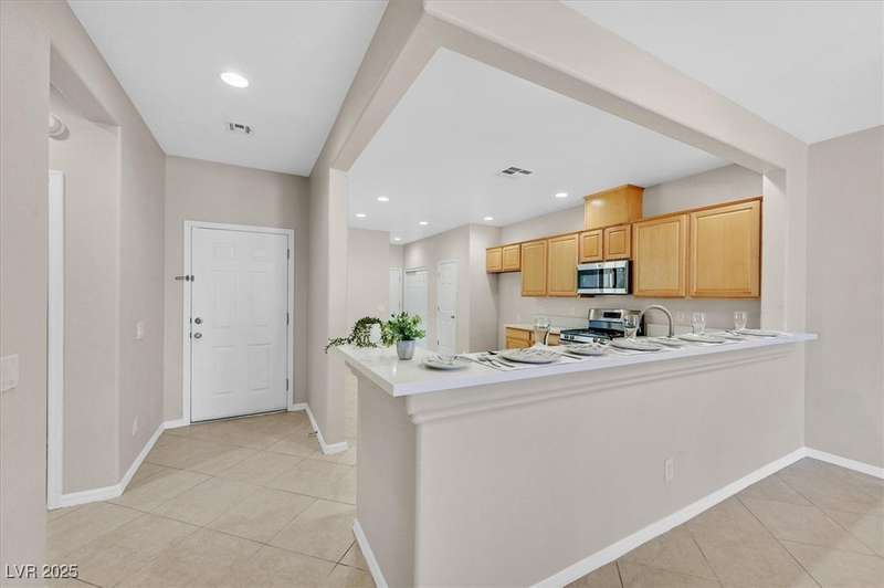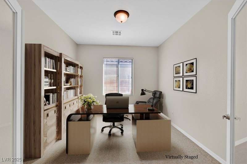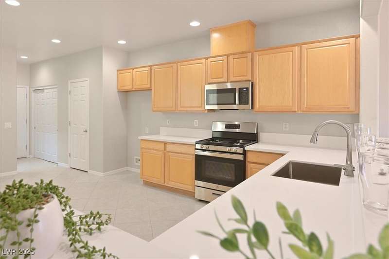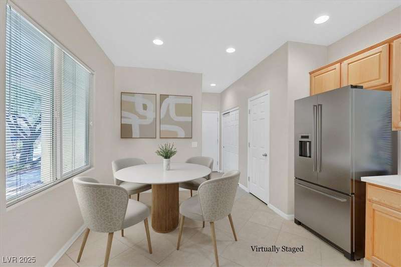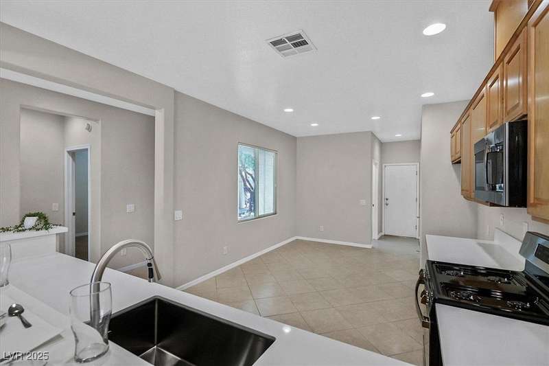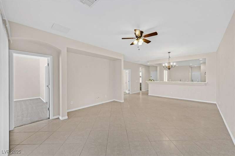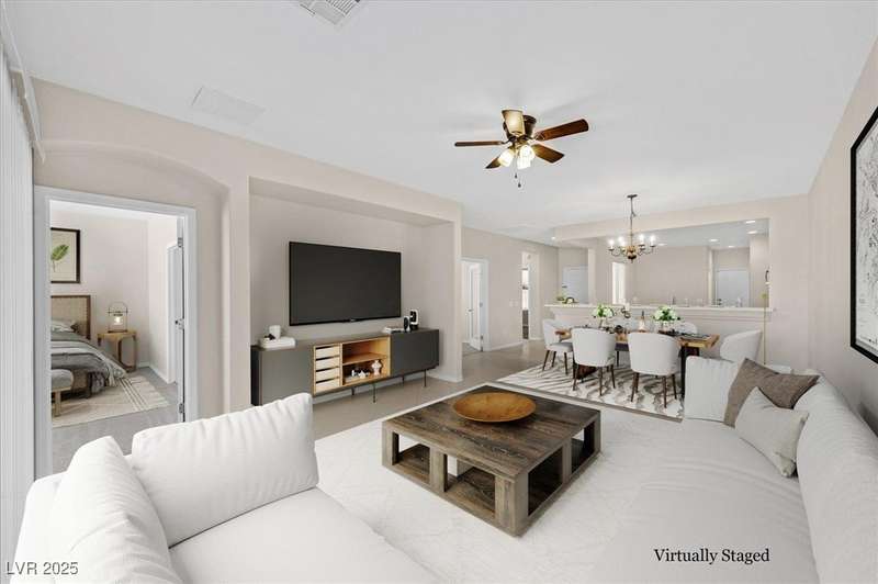 Freshley updated wonderful townhome in Silverstone Ranch Community is ready for you today!! Spacious open floorplan with 2 bedrooms, separated by a den with double doors, use as an office, playroom or convert to a third bedroom. Kitchen features new quartz counter tops, new stainless-steel appliances, breakfast bar and pantry. Laundry room ready for your appliances located off the kitchen. Spacious 2 car garage opens into kitchen for ease to carry groceries into fridge and pantry. Beautiful tile floor throughout kitchen, living room and bathrooms with new carpet in bedrooms and den. Amazing unobstructed view from backyard of the mountains are sure to please. Don't forget about the clubhouse around the corner with pool, spa, and exercise room! Welcome home.