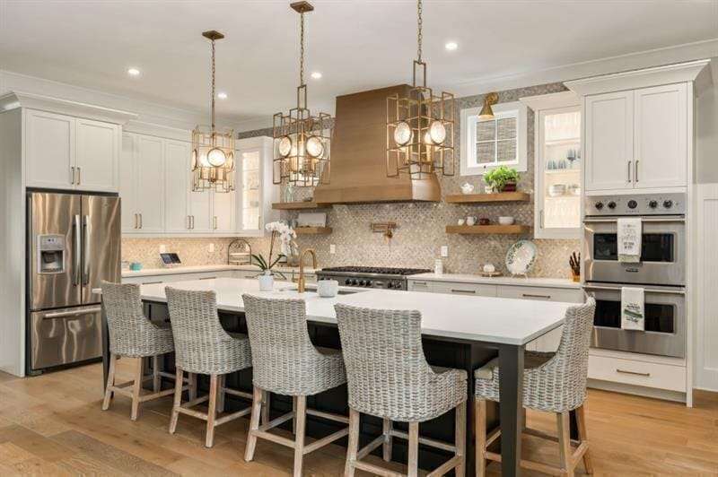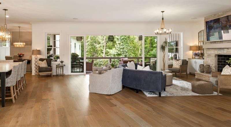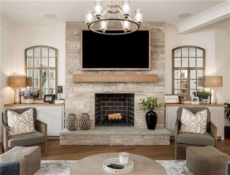 Custom Lakefront Home with Dock on Lake Lanier! Priced BELOW appraised value. Experience lakefront luxury with this stunning newly built custom home on Lake Lanier. Completed in 2024, this exquisite property offers the perfect blend of modern design, spacious living, and unparalleled lake views, located in the sought after Gainesville GA area, yet just inside Forsyth County. Enjoy breathtaking open water views and deep-water access. It's premier lakefront location with expansive water views from your private dock makes this property the perfect gem. The brand new 32' x 32' custom built dock by Martin Docks entertains well with single boat slip, spacious lower deck sitting area, and an upper party deck, perfect for enjoying the ultimate lake life. This Custom Home offers expansive open floor plan with high ceilings, large windows, and abundant natural light. Custom engineered white oak flooring throughout, provides a seamless and elegant look. Gourmet Kitchen with top-of-the-line appliances, custom cabinetry, and a large island opens to living area and large covered porch overlooking private courtyard. Gorgeous walk-in pantry with coffee bar, custom cabinetry and tons of storage. Four spacious bedrooms, five full baths, and two half baths. The primary suite features stunning lake views, a spa-like bath with a walk-in shower, soaking tub, and a custom closet. Two oversized laundry rooms, one upstairs, one down. Four beautifully designed fireplaces throughout the house. Huge Media Room equipped with a 160-inch screen, four custom built-in queen size bunk beds, and a full bath. Two family rooms, a game room with a full bar, ideal for entertainment and leisure. Three covered porches and one screened sleeping porch overlooking the lake. Enjoy the spectacular courtyard with an outdoor fireplace, large patio, outdoor grilling bar perfect for outdoor cooking, dining and entertaining. State-of-the-art finishes and features throughout. Entire house is insulated with spray foam walls and roofline for maximum energy efficiency, coupled with high-efficiency HVAC systems. Gated entry for privacy and security. This exquisite home combines luxury living with the tranquility of lakeside life. Whether you're looking for a primary residence or a vacation retreat, this property has everything you need for comfortable and stylish living. Don't miss the opportunity to own this spectacular home on Lake Lanier.