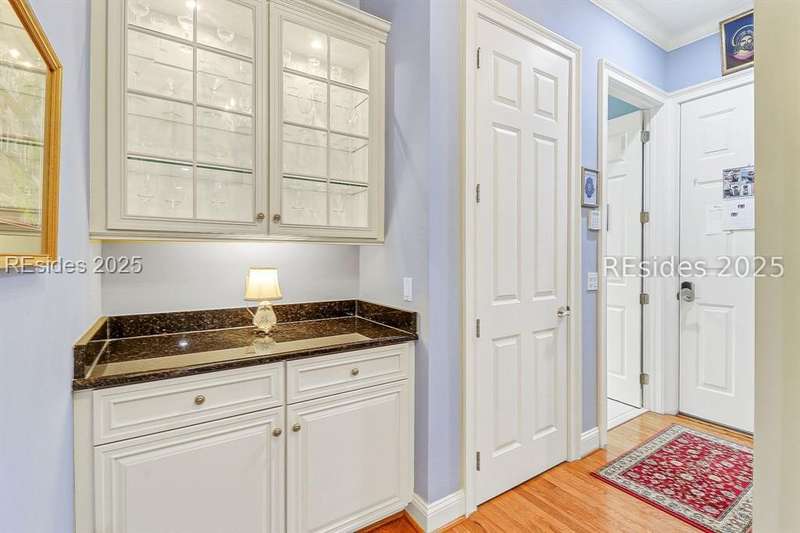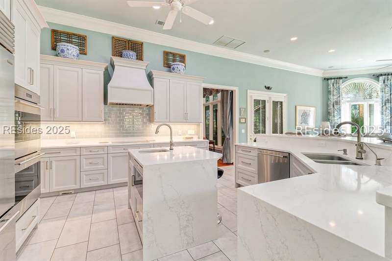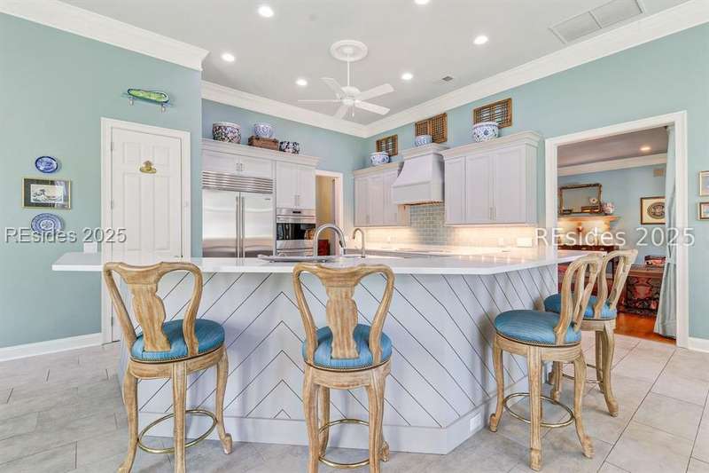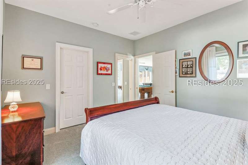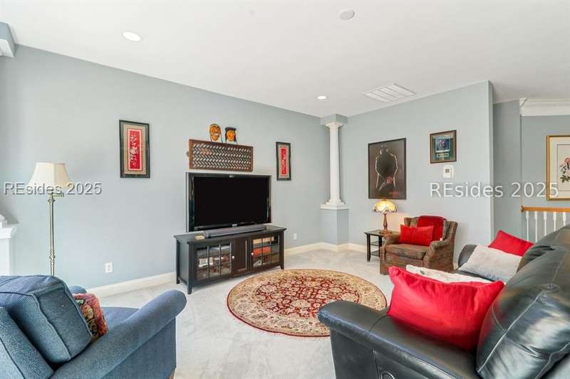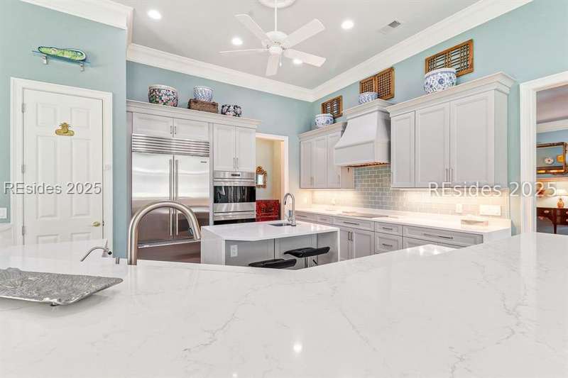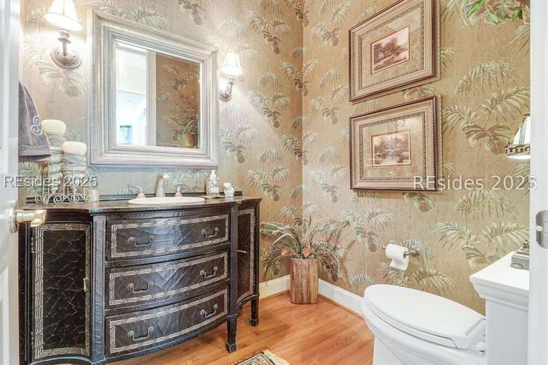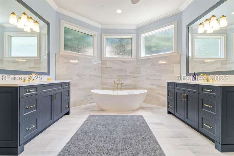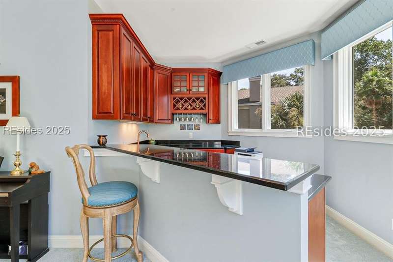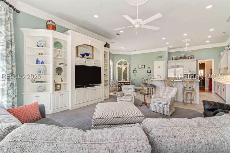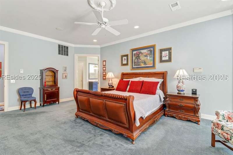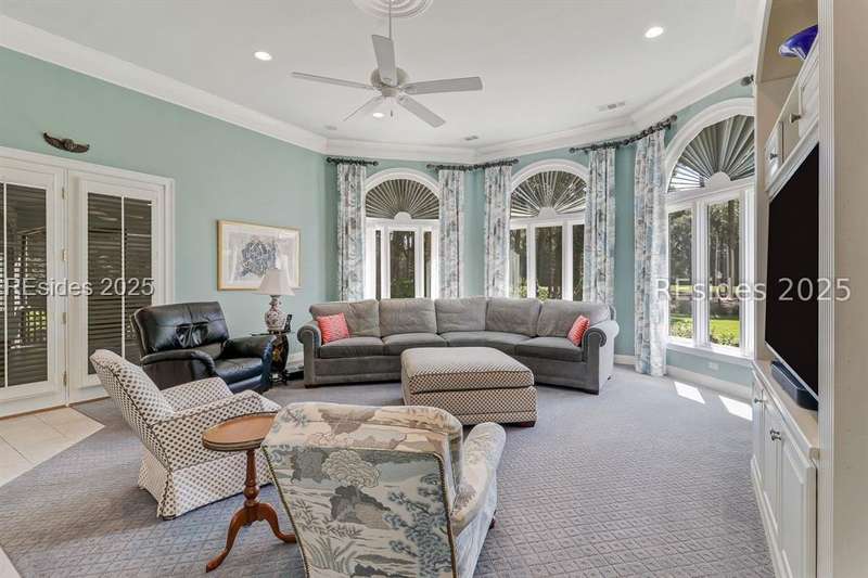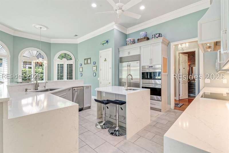 The combination of one of the most private locations and a custom design gives this home an estate-style feel in The Golf Club at Indigo Run. Few details were spared in the impressive updates to the kitchen and primary bath. The heart of the home features a stunning chef's kitchen with high-end Sub-Zero and Wolf appliances, quartz waterfall countertops, large walk-in pantry, abundant cabinets and counter space with a prep sink in the island, and an open flow into the expansive family room--flooded with natural light from its southern exposure. Adjoining the family room is a screened-in porch with built-in heaters for year-round enjoyment, which overlooks the heated freeform pool and spa. Formal living and dining rooms add elegance, while the spacious primary suite on the left wing of the home offers privacy and comfort and includes two large walk-in closets and a spectacular, recently renovated primary bath features separate vanities, a free-standing tub and walk-in shower. The handsome study/office at the front of the home provides the perfect work-from-home space with its built-in cabinets and shelves. A dramatic staircase leads from the marble foyer to three additional bedrooms and a large bonus room with pool table, plus an additional room adjoining one of the bedrooms, offering multiple use options. An oversized balcony is accessed from the bonus room and offers vistas of one of the most secluded and serene settings within Indigo Run. This home is for an owner who wants the luxury of space and flexibility of a gracious home complemented by a spectacular private location. Really must see to appreciate the expansive panoramic gardens, views of the 12th Hole of the Golf Club, and the private setting that photos can't convey.