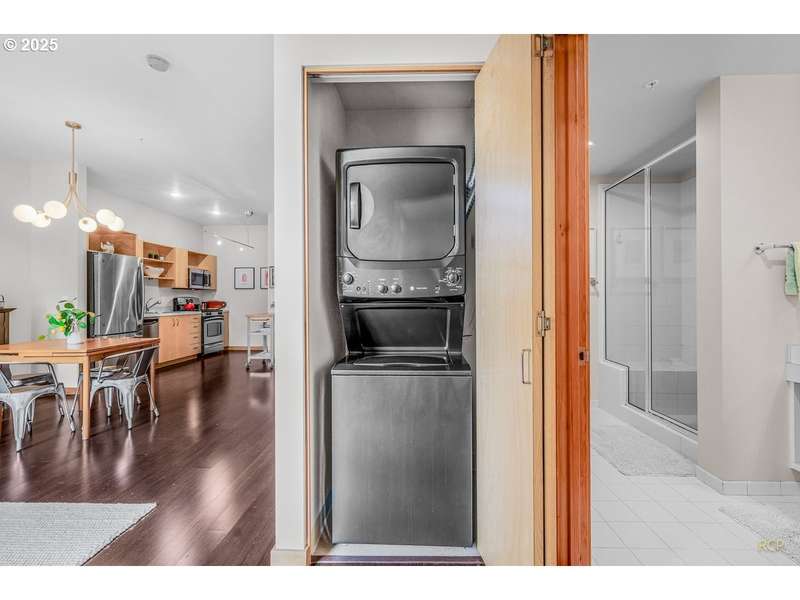 Urban Elegance in the Heart of the Pearl! Welcome to effortless city living in this meticulously maintained one-bedroom, one-bathroom condo in the heart of the Pearl District. With over 850 square feet, this spacious home features an open floor plan that seamlessly blends modern comfort with timeless style. Large windows invite natural light while offering serene courtyard views, creating a peaceful retreat in the middle of the city. Inside, you'll find engineered wood floors, a walk-in closet with custom organizers, and a sleek kitchen outfitted with stainless steel appliances. This home also includes deeded parking with EV charging and a private storage unit, adding extra convenience to your lifestyle. Enjoy easy access to the Pearl’s renowned restaurants, boutiques, galleries, and parks—everything you love about city living, right outside your door!