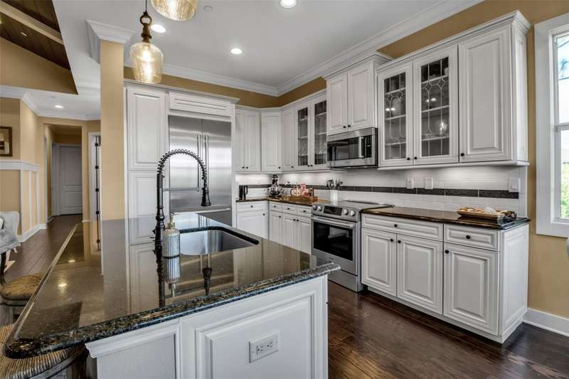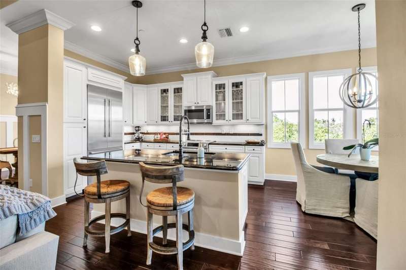 Exceptional Coastal Living. This remarkable residence offers a rare opportunity to experience the finest in coastal luxury within the gated, resort-style community of Harbour Isle on Anna Maria Sound. Meticulously constructed and impeccably maintained, this Harbour Grand Retreat model, the largest floor plan available in the community combines timeless craftsmanship with modern elegance and comfort.Perfectly positioned for serenity and privacy, the home captures peaceful sunrise views over the mangroves and glimpses of breathtaking sunsets over Anna Maria Sound from its private third-floor retreat. Distinctive upgrades are found throughout, including UV-tinted windows, plantation shutters, custom cabinetry and closets, upgraded lighting, Sonos surround sound, decorative wood and ceiling treatments, and a private elevator servicing all three levels. Additional enhancements include an upgraded HVAC system (2023), mini-split system (2024), Insta Hot water, ADT alarm and fire detection, French doors, tray ceilings, crown molding, and wood flooring throughout with tile in the baths.The gourmet kitchen features 42 white wood cabinetry, granite countertops, a spacious island, and top-of-the-line Bosch appliances, including a built-in refrigerator. The owner's suite is a private retreat with serene views, dual custom walk-in closets, and a spa-inspired bath with dual vanities, soaking tub, and separate shower. The guest suite includes its own private bath, while the third bedroom and separate den/office share the full guest bath and provide additional flexibility. The main living level also includes formal and casual dining areas, a sunroom, and an inviting living room filled with natural light. The third-floor observatory offers an ideal space for an office, studio, or quiet reading area. The large two-car garage with 12-foot ceilings provides ample storage, including custom cabinetry.Residents of Harbour Isle enjoy access to world-class amenities, including the 23,000-square-foot Beach Club overlooking Anna Maria Sound, featuring a heated resort pool, spa, Sky Bar lounge, and 4,200-square-foot fitness center. The community also offers multiple pools, outdoor grilling areas, fire pits, walking trails with hammocks, and a full calendar of social and recreational activities.Conveniently located just beyond the gates, Safe Harbour Marina provides boat access, while Floridays Restaurant and the Compass Hotel offer additional dining and leisure options. The pristine sugar-sand beaches of Anna Maria Island are just over a mile away, offering boutique shopping, dining, and island charm. Robinson Preserve is less than two miles away, ideal for kayaking, biking, and nature exploration.This home represents the very best of Florida's coastal lifestyle-where elegance, comfort, and natural beauty come together seamlessly.Schedule your private showing today and discover the incomparable lifestyle that awaits in Harbour Isle.